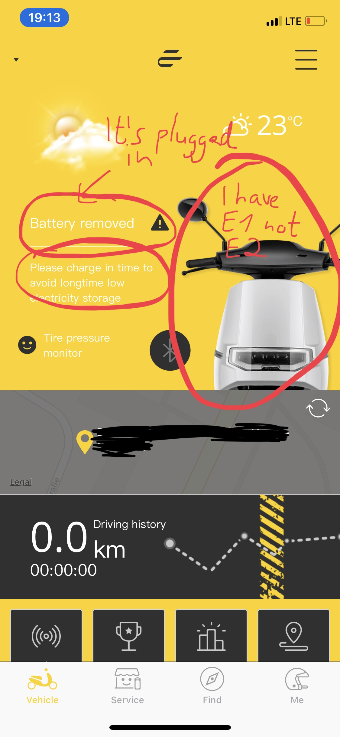 - Es wird beim ersten Öffnen ein Ecooter E1 angezeigt, nach Koppeln mit dem Modul erscheint nun ein E2, obwohl ich einen E1 habe