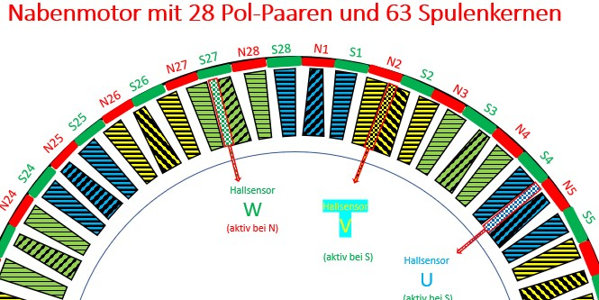 Ohne diese Gegensätzlichkeit der nahe zusammenliegenden Hall-Sensoren laufen unsere großen Nabenmotoren nicht.