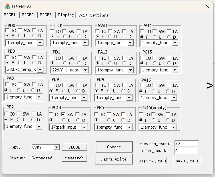 die VOTOL-Software erlaubt bei den Port Settings die Auswahl von Funktion 50:foot_plat_enabeled.