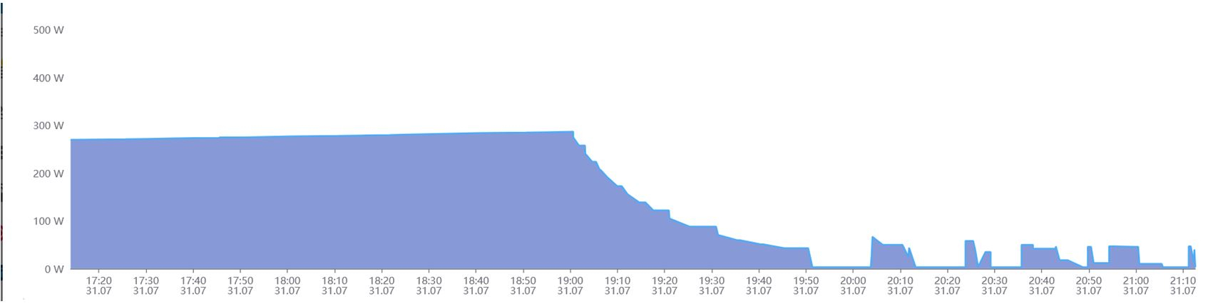 Wenn er "voll" ist, lädt er anscheinenend immer wieder ein Stückchen nach.