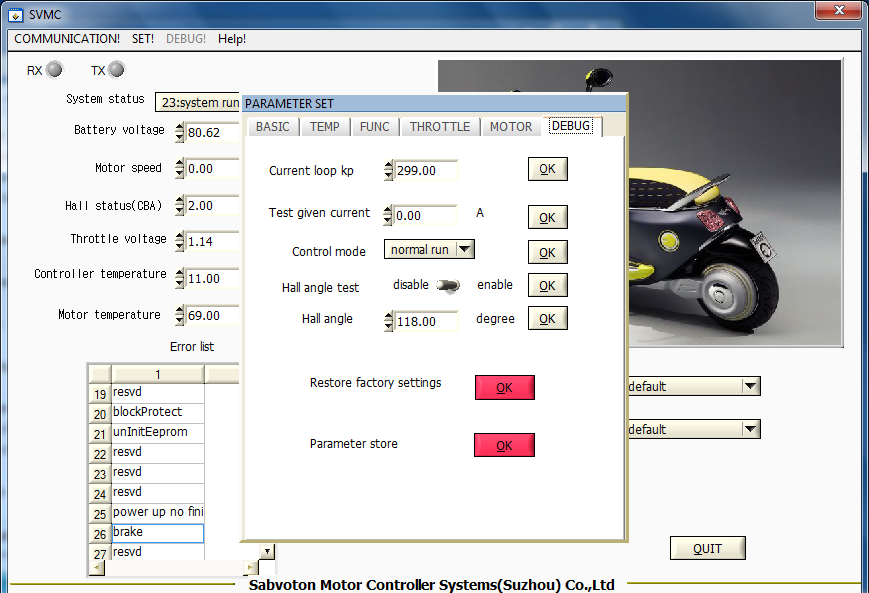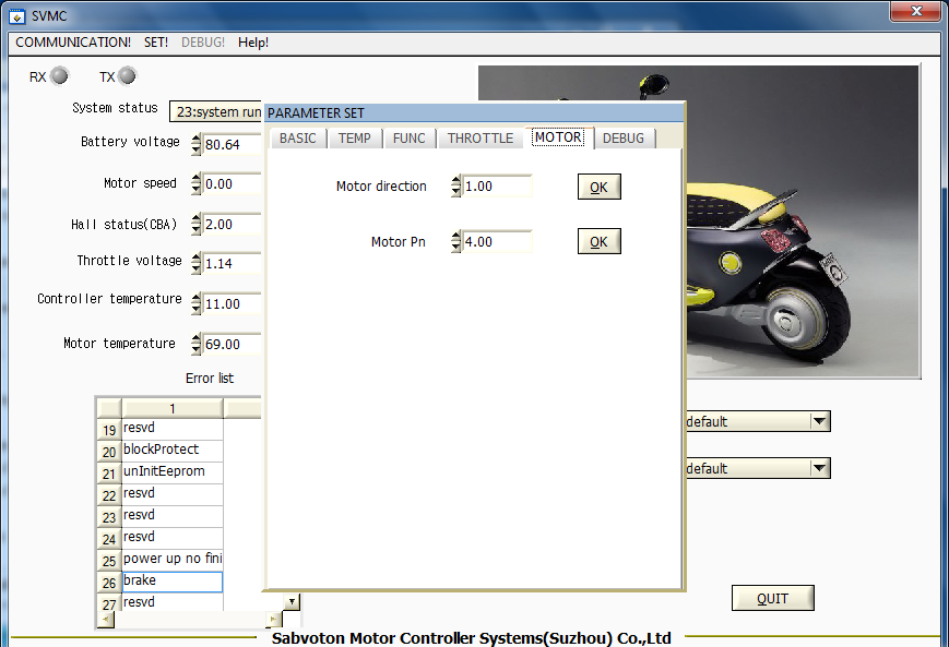 Naja, ein kleinen Unterschied gibt es noch: Peda hat einen SVMC (classic model) und MEroller verwendete einen SSC (new model). Bei meinen Sabvotons verweigerte der Hall Test sein abschliessendes Okay - ich mußte mehrmals, es gibt 6 Möglichkeiten, die Hallsensorenreihenfolge manuell wechseln. (Zum Testen könnte ein 16A Sicherungsautomat in der Plusleitung, Batterie zum Controller, hilfreich sein).