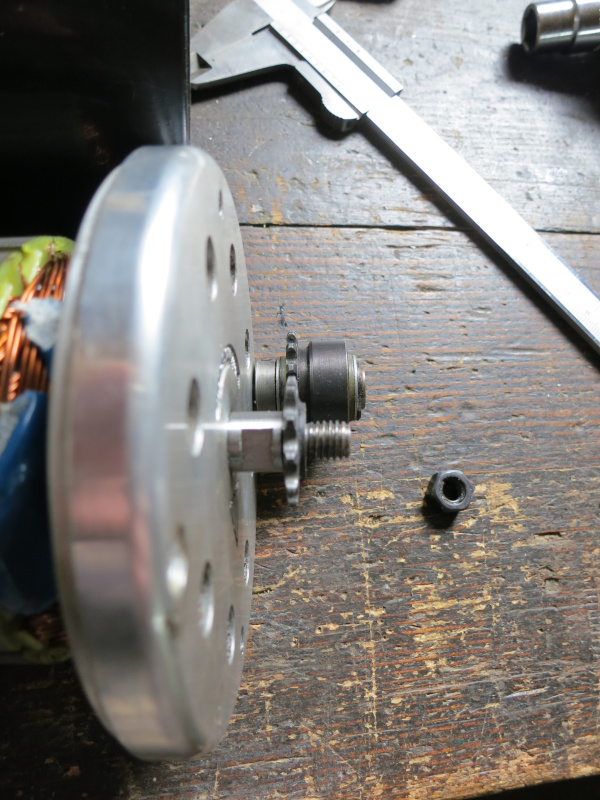 Es sah gut aus, die Ritzelflucht stimmte. Mit einer Drehbank die Rotorachse etwas abdrehen und ein Loch durchbohren und die Umrüstung wäre fertig.