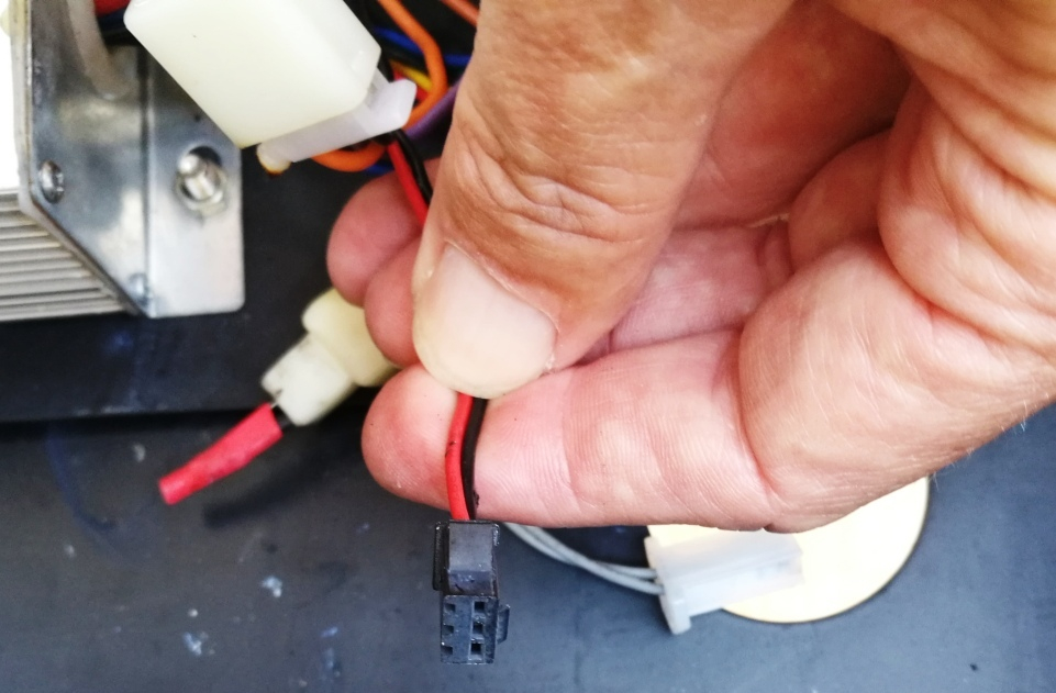 2. habe ich beim Abbauen das Stromkabel des Nabenmotors ausgebaut. Beim Öffnen der Abdeckung vor dem Batteriefach stellte ich fest, dass es einen massiven Kabelbrand (offensichtlich mit grösserer Hitze-Vermutung) an verschiedensten Kabeln gegeben hat. Selbst Stecker sind an- und zusammengeschmort. Ein Wunder, dass der Roller überhaupt noch lief???