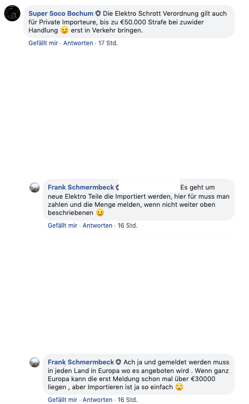 - Roller: Super Soco TC 2018 (BT4.0 fehlt, VR-Felge ()() )