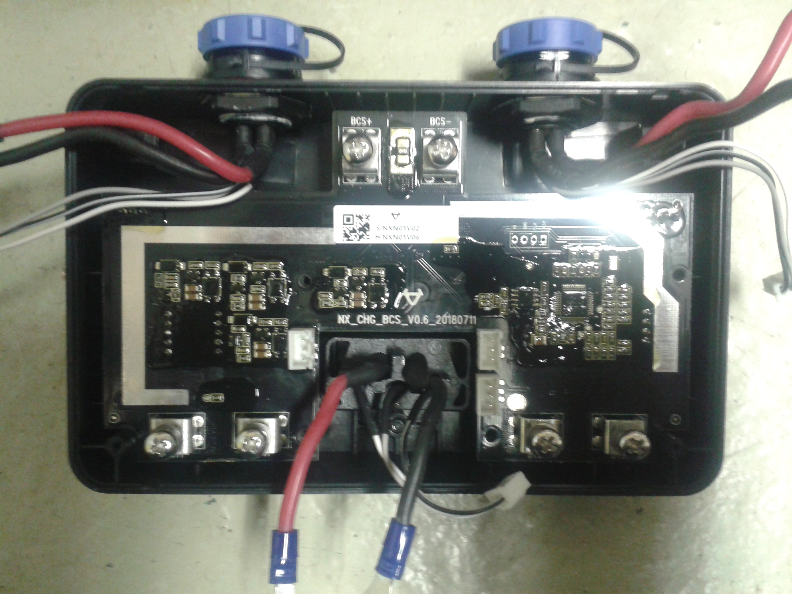 Mangels Garantiesiegel war ich neugierig und hab' 'mal reingeschaut. Auf dem Bild "Platine v. unten" sieht man neben den 4 Starkstromanschlüssen kräftige Transistoren, denen aber jew. das mittlere Beinchen fehlt, dh. die können maximal Diode spielen.