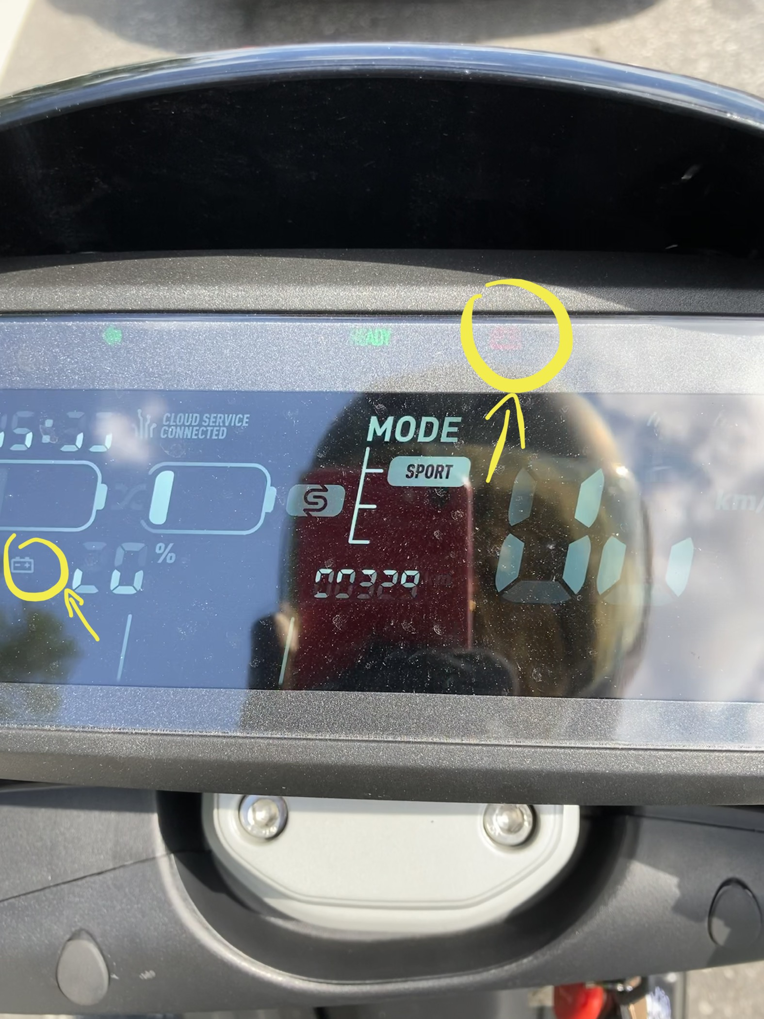 Ab 20% fing die Rote Batterieleuchte zwischen den Blinkern an zu blinken und ebenso ein Batteriesymbol, welches erscheint.