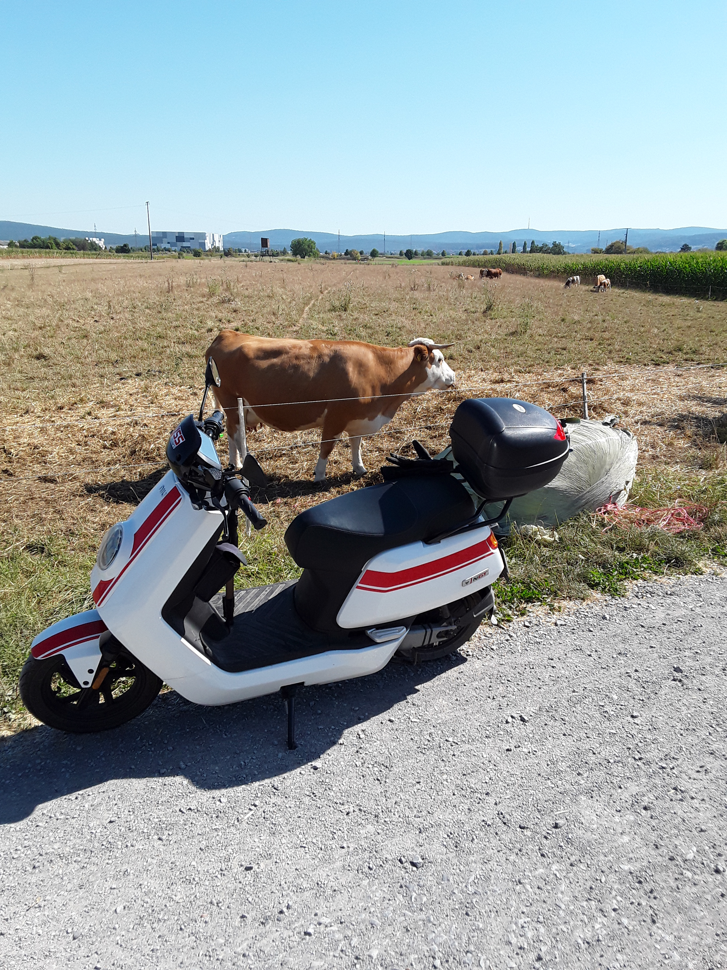 Heute erstmals das Wagnis eingegangen und mit dem Niu ins Büro nach Salzburg: 64km hügelig und permanent leicht bergauf, meistens Gegenwind. Also in der Früh den Reifendruck geprüft, dann vorsichtige geduckte Sparfahrt, 26% Rest Akku am Ziel. Das lief sehr gut. Man könnte sich am Sitz also etwas weiter aufrichten statt unangenehm zu kauern.