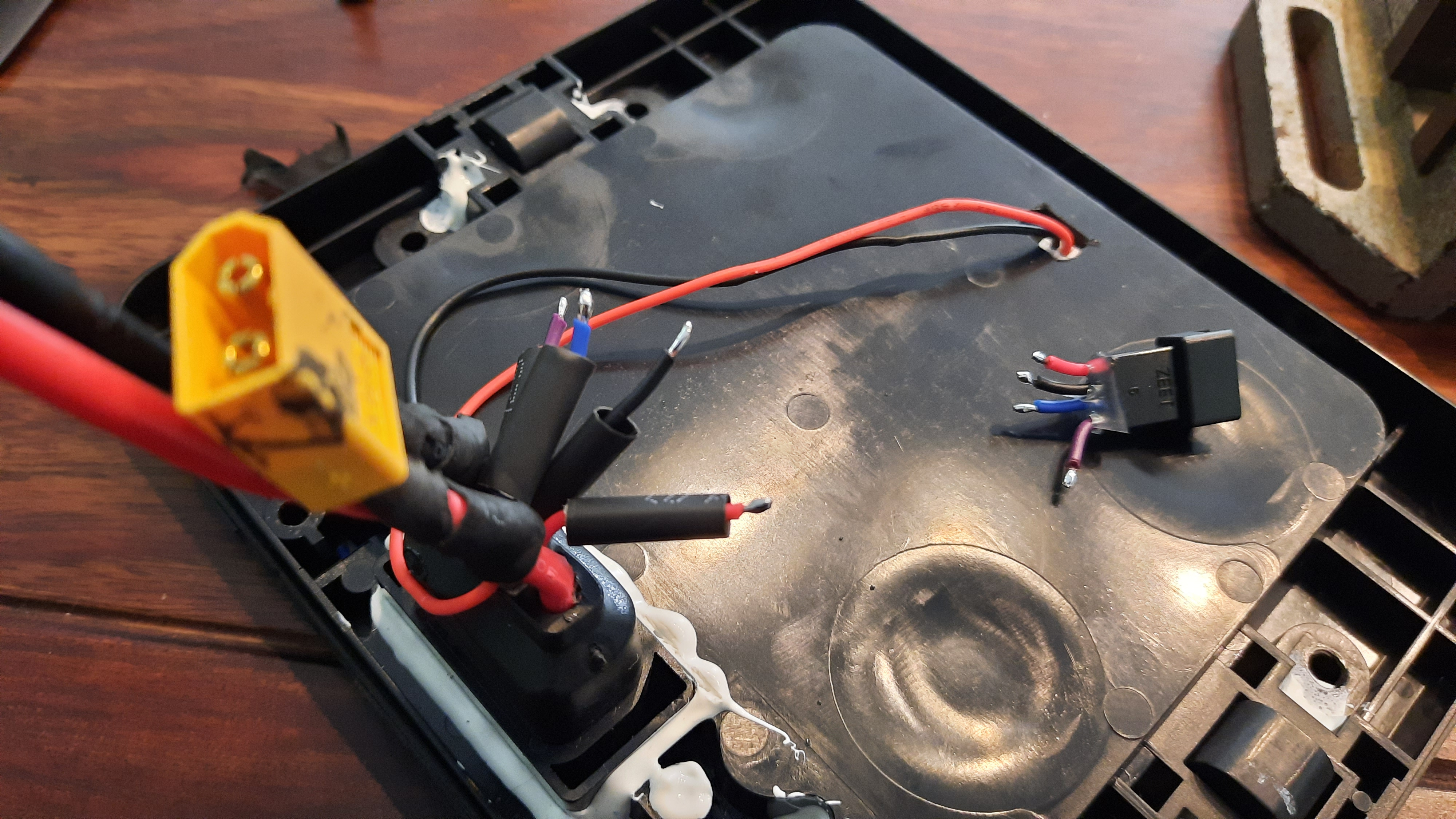 Die Buchse am Akku habe ich mit Epoxytharzkleber sowie einem Kabelbinder fixiert.