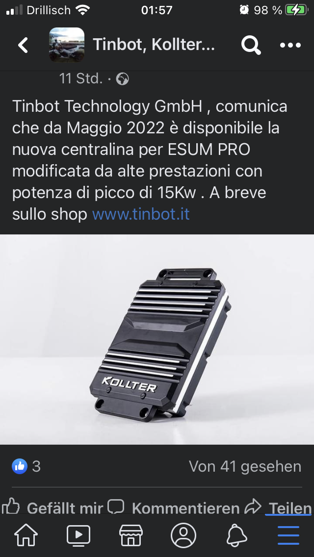 Tinbot Italia wird im Mai 2022 einen stärkeren Controller für die Esum Pro anbieten. Der Preis wird noch nicht genannt, ich schätze 500-700 €.