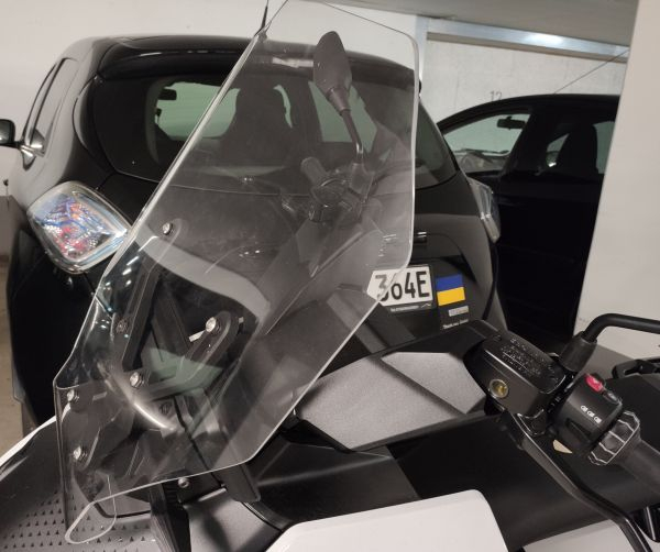Die Scheibe ist jetzt erstmal abgebaut und da musste ich lachen: Es erinnern sich vielleicht Einige an die zu langen oberen Schrauben der Scheibe, für die ich Kappen gedruckt habe. Es gibt sechs Schrauben. Die unteren vier gehen ducht die Verstärkung durch in den Roller, die oberen Beiden (die bei mir zu lang waren) gehen nur in eine Gewindebuchse in der Versteifung.