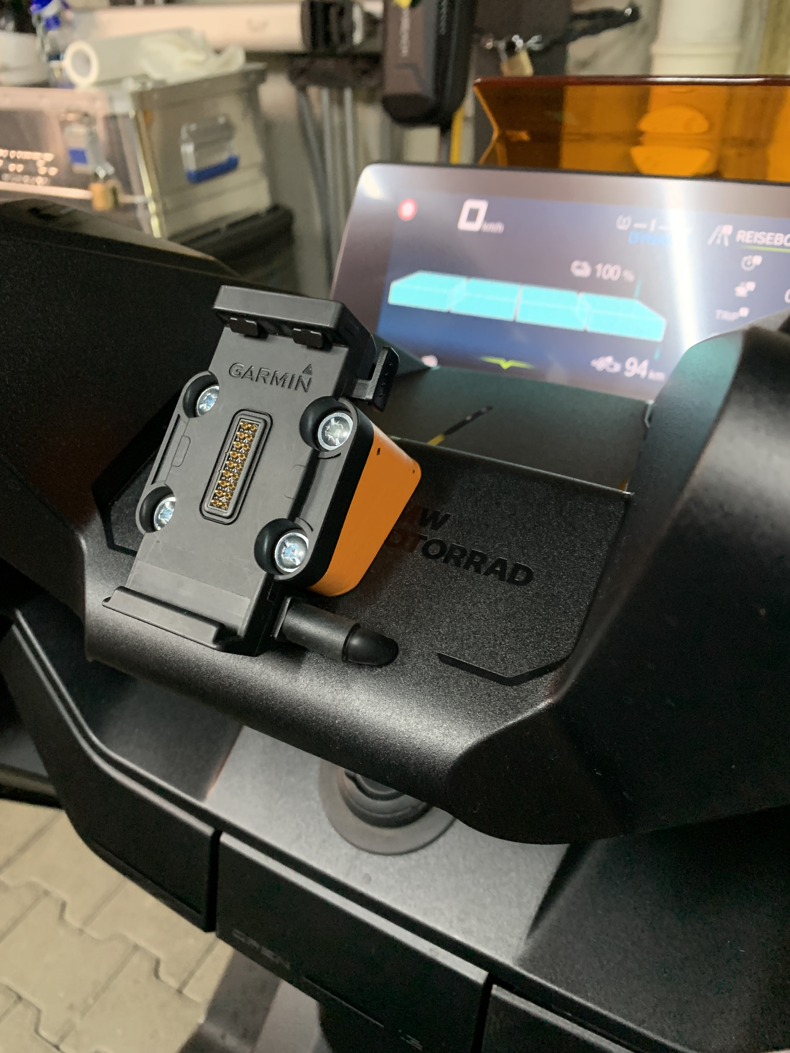 Das BMW Navi hab ich von meiner GS, braucht auf dem CE04 natürlich niemand....mir ging es nur um den Halter fürs Handy, der genau in diese Naviaufnahme passt und das Handy induktiv laden kann.