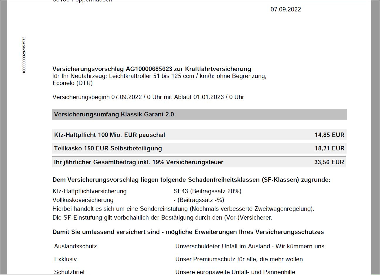 Öhm, du hast dein ROLLER als MOTORRAD versichert? 51ccm und offene Geschwindigkeit ist doch komplett falsch für einen "45kmh" Roller.
