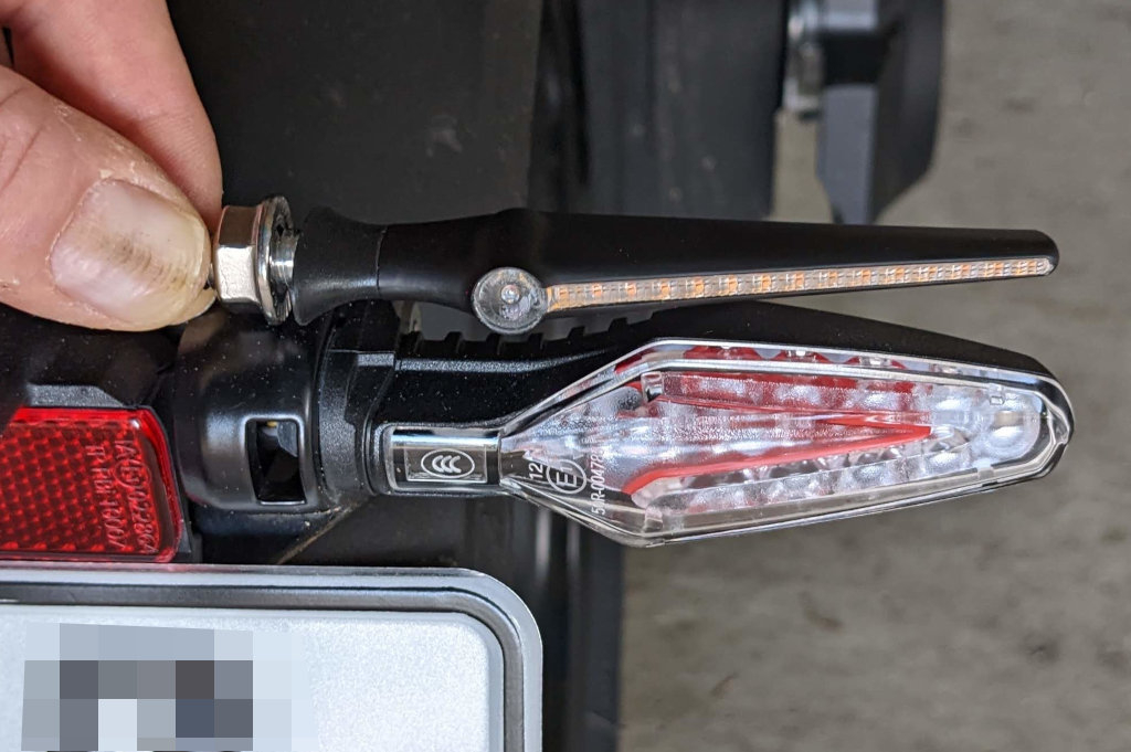 Mit normalen Blinkern, die ohne externe Stromversorgung auskommen, also beispielsweise dem Modell Atto wäre das kein Problem. Da ist die Installation hinten mit dem i.LASH B3 Modul ziemlich einfach.