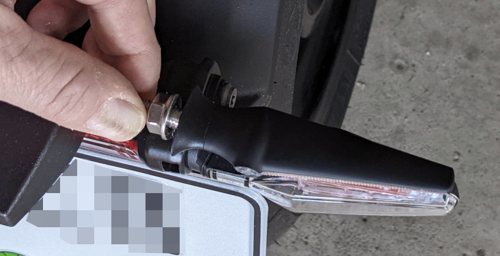 Hier mal zur visuellen Vorab-Einschätzung. Man wird innen etwas unterlegen müssen, um Platz für den Schraubschaft zu schaffen, also ändert sich die Breite quasi nicht, auch wenn die Blinker etwas kürzer sind als die Serienblinker.