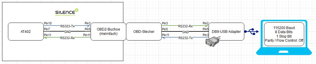Äquivalent dazu ist Pin11 am AT402 RS-232-RX und muss am DB9 auf Pin 3 (TxD) landen.