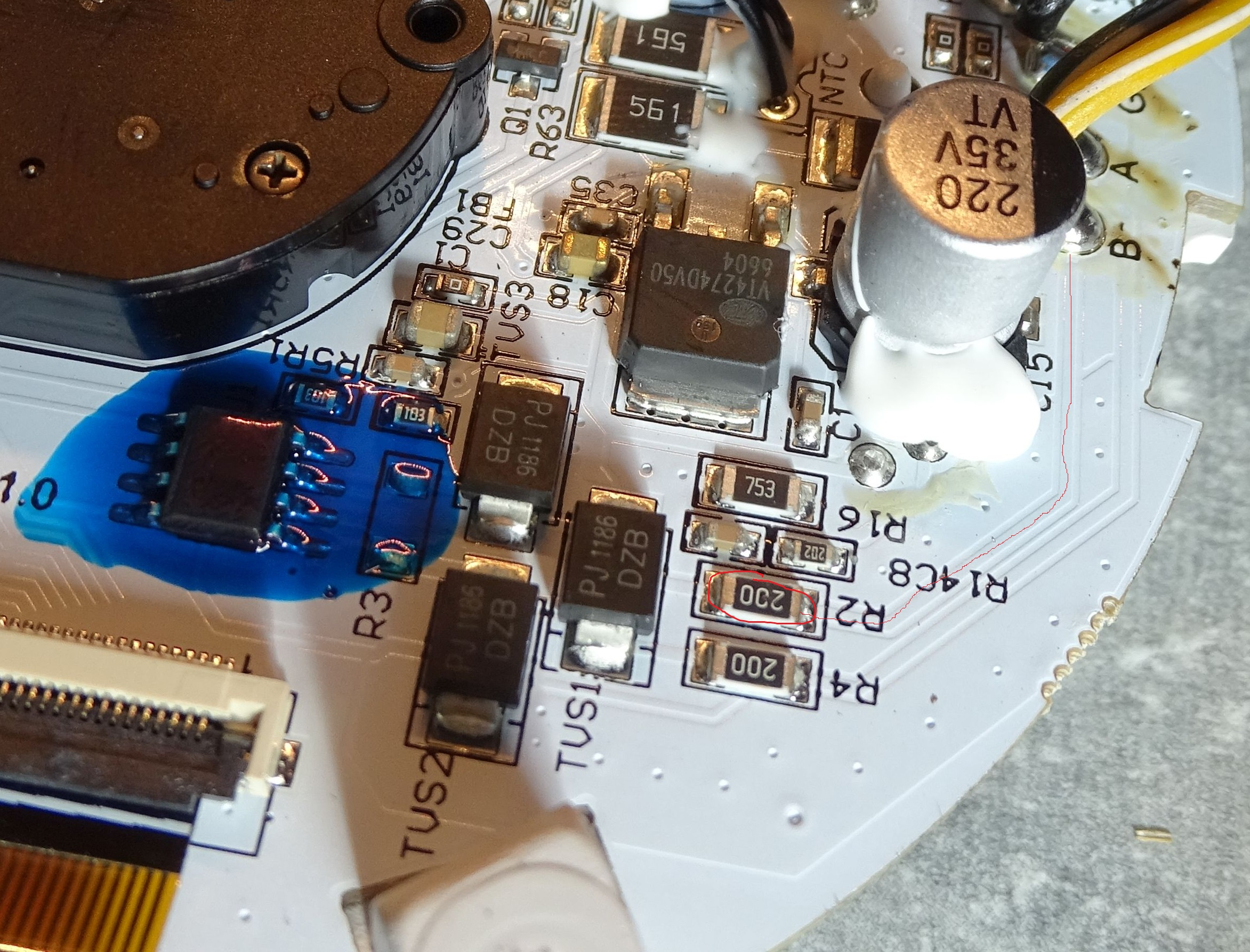 Danke dir für die Bilder. Der R2 sieht schon mal verdächtig aus. Die TVS-Bauteile sind Suppressordioden, das ist schon mal gut.