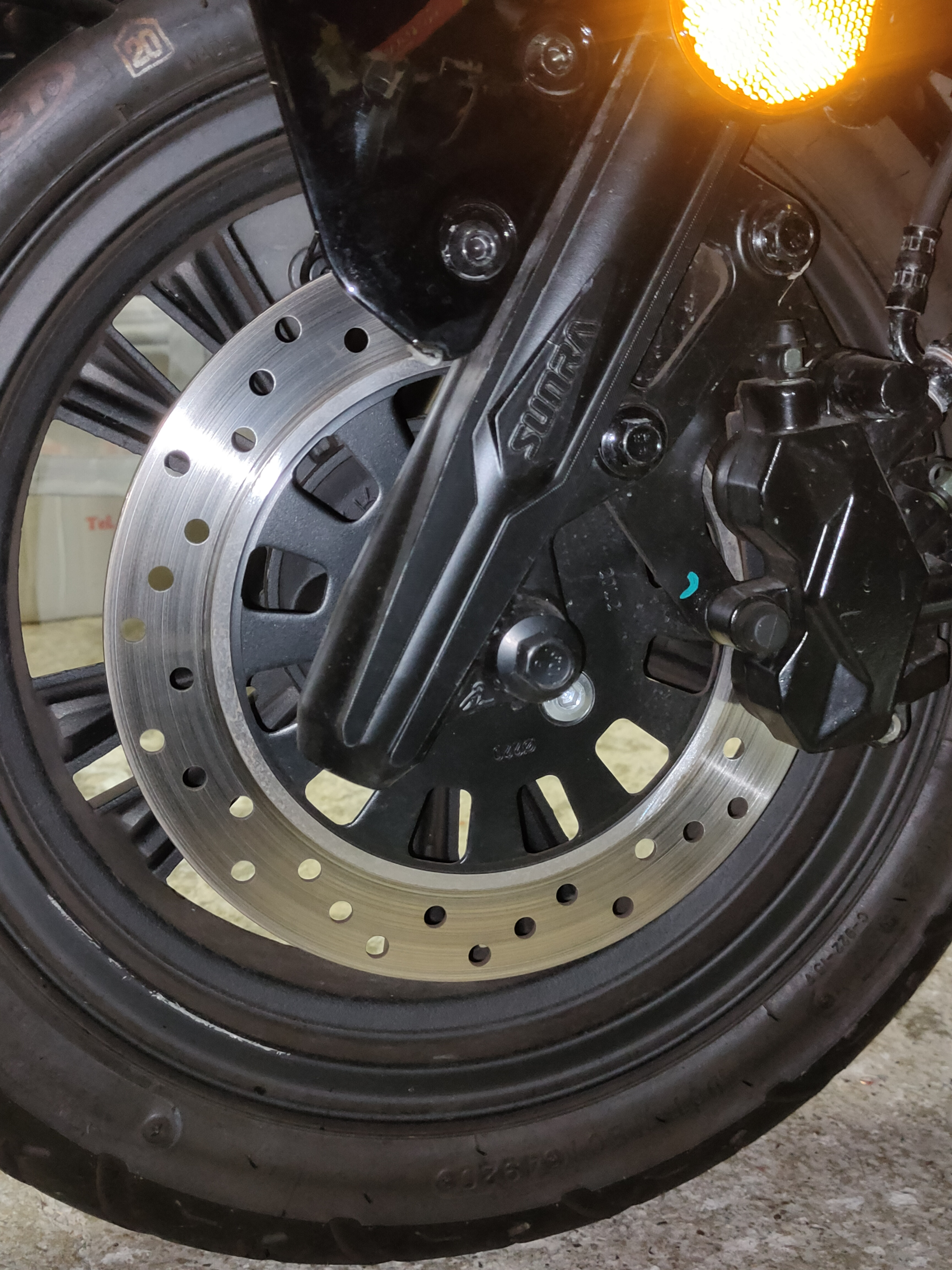 - Bremsen: Ich fahre weder Rennen wie in der MotoGP, noch gehöre ich zu denen, die im letzten Moment bremsen, im Gegenteil, wenn ich ein Hybridauto fahre und Elektroautos gefahren bin, bin ich es gewohnt, regeneratives Bremsen zu verwenden (und davor dass der Motor bremst); hier mache ich das gleiche, ich benutze oft die """"""regenerative"""""" bremse, die nicht kratzt und erst am ende kneife ich leicht mit der vorderen, so sehr, dass wenn ich Schauen Sie auf die hintere Scheibe. Ich sehe eine leichte Oxid-Patina, wie Sie auf dem Foto sehen können. Ich spüre, dass ich selbst größere Bremsungen wie das CBS nie mache, noch in einem Kreisverkehr, in einer Kurve oder sogar nur von Hand In der Garage spüre ich ständig, wie der vordere Belag auf der Scheibe reibt, als wäre er abgenutzt! In 3000 km, um einen Belag zu tragen, hätte ich immer verrückte Bremsungen machen sollen, die das Fahrzeug von Natur aus nicht zulässt (es sei denn, Stürze usw.). Außerdem ist zu Beginn des Bremsens mit der Scheibe ein "Klopfen" zu hören, als würde sich etwas bewegen, vielleicht hängt es noch mit der Lenkwelle zusammen. Mal hören, was sie in der Werkstatt sagen. https://www.youtube.com/watch?v=aWqM53vPPBI