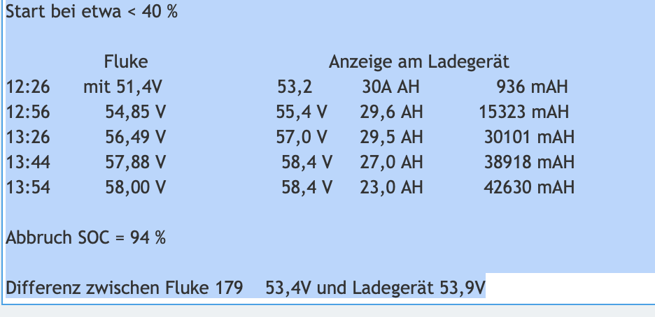 Edit: Die am Ladegerät angezeigte Spannung differiert im Leerlauf um 0,1V mit meinem Messgerät (Fluke 179), dieses ist "geeicht" zumindest lt. Vertreiber.