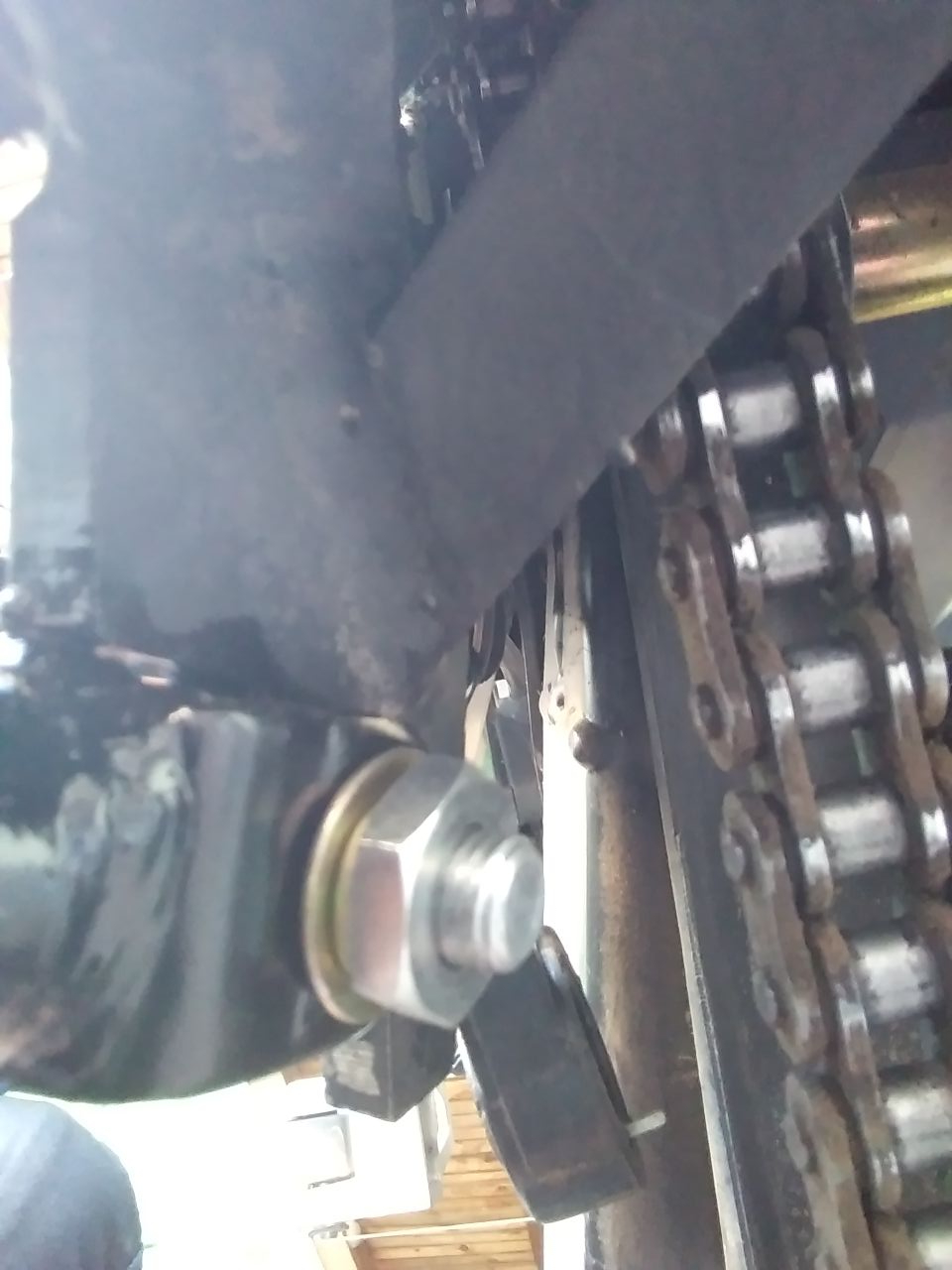 Aber Achtung, der Bolzen hat kein metrisches Gewinde! Ist ein Zollgewinde. Hier konnte mir unser Instandhalter in der Firma mit einer passenden Mutter weiterhelfen.