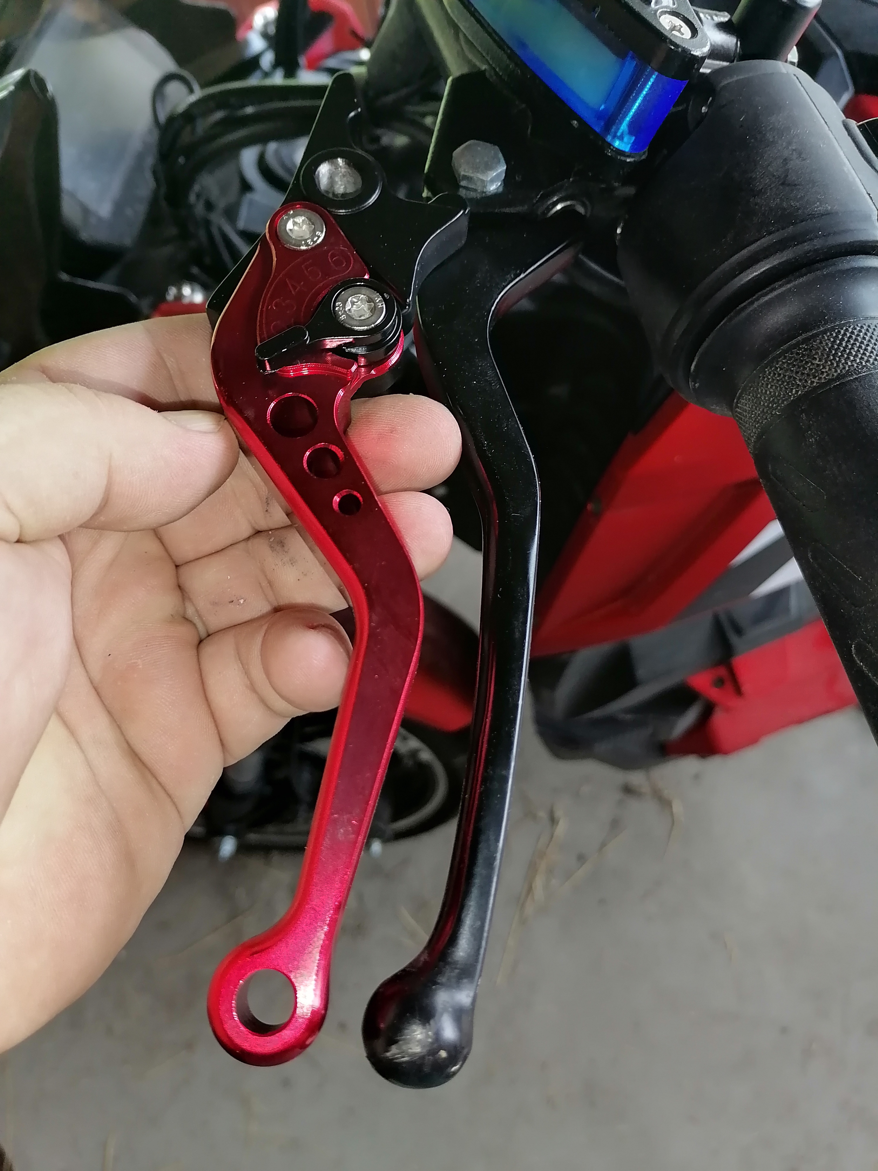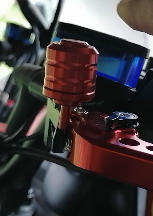 Hi guys, as I mentioned earlier, I ordered new brake levers (16 euro) + brake button (10 euro) from Aliexpress. Now I can block the bike so it does not move when I need both hands (take off helmet, set navi app etc.), holding it with legs is not comfortable for me. Yes, velcro stripes or plastic brake holder in the pocket would work too but I like this solution much more.