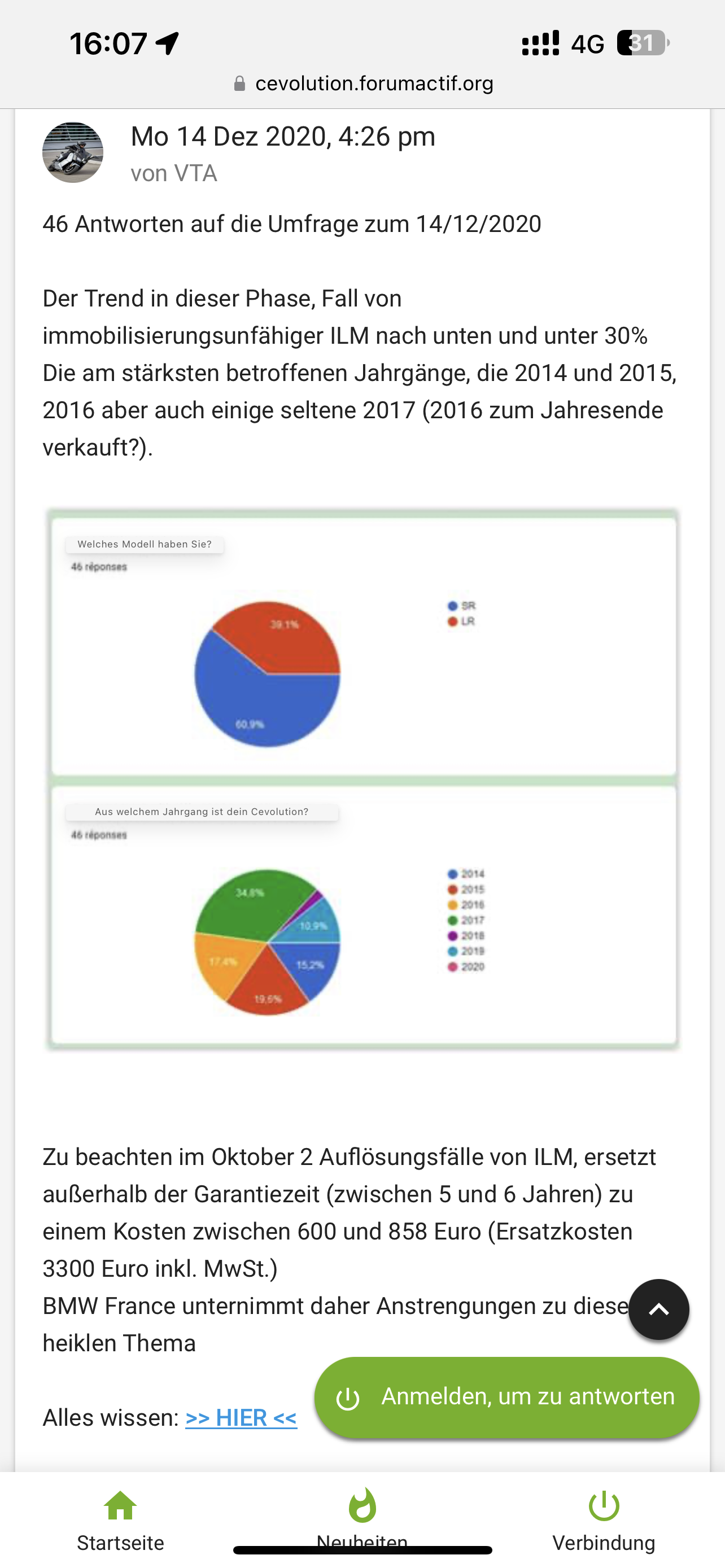 Danke Norbert. Hintergrund meiner Frage war aber vielmehr wegen dem ILM. Man hat dort in französischen Foren herausgefunden das bei 6-8A der Lader am meisten geschont wird, da wohl bei der Stufe der Lüfter am besten arbeitet und das Ladegerät dabei nicht zu Warm wird.Norbert hat geschrieben: ↑Do 12. Okt 2023, 12:55Moin,