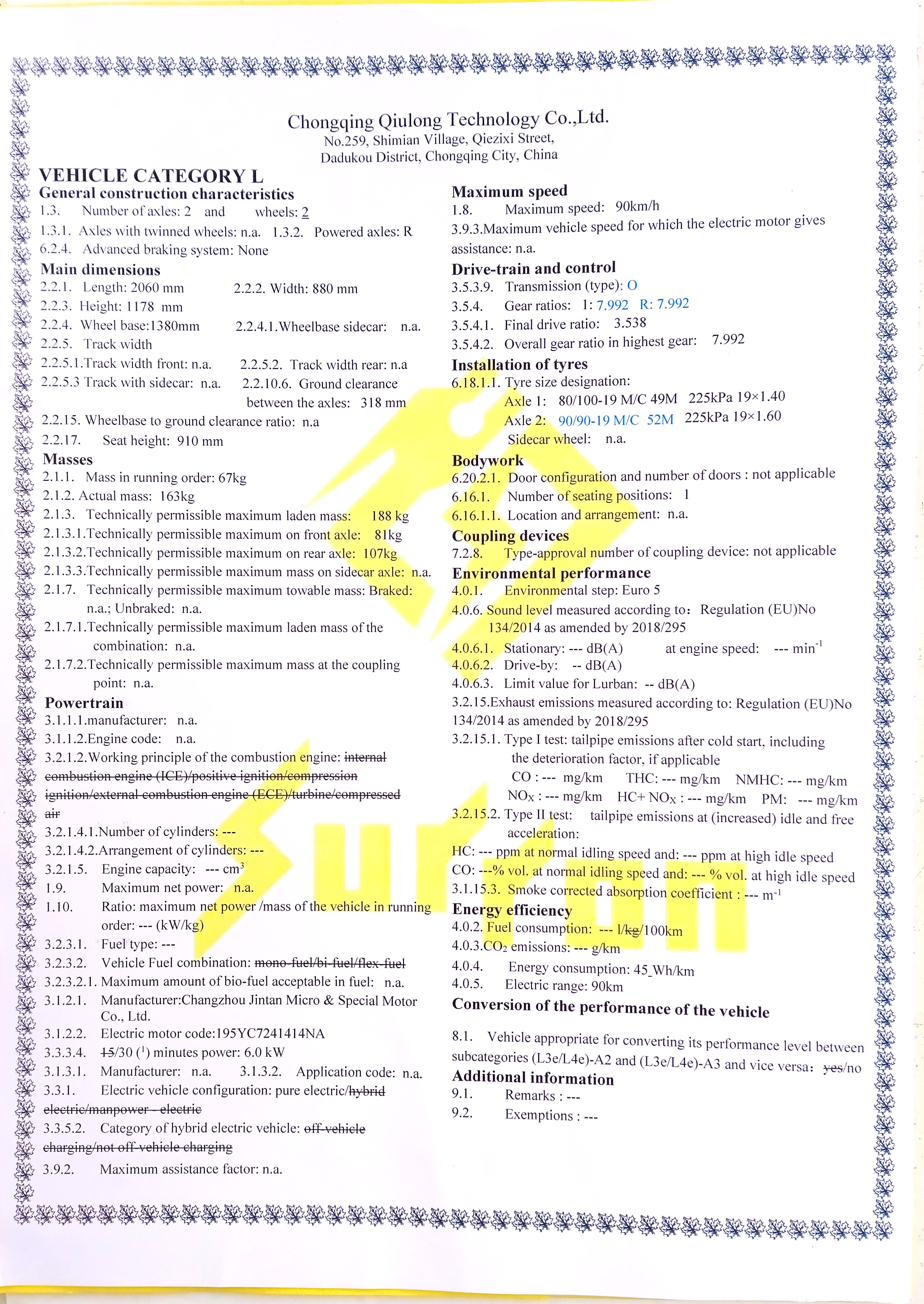 Hallo, könnte mir evrl.jemand ein Foto vom CoC Schein zukommen lassen? Gruß MichaultrabeeJan hat geschrieben: ↑Sa 24. Jun 2023, 08:30Mal etwas anderes zur Zulassung: Bei mir ist die Leermasse offensichtlich mit Fahrer angegeben. In der COC stehen auch die 163Kg drin.Ist das bei euch auch so? In den Normen und Richtlinien finde ich nur Angaben das 4-Radfahrzeuge mit 75 Kg Fahrer angegeben werden. (88Kg Fahrzeug +75Kg Fahrer macht 163Kg "Leermasse" im Fahrzeugschein Feld G)