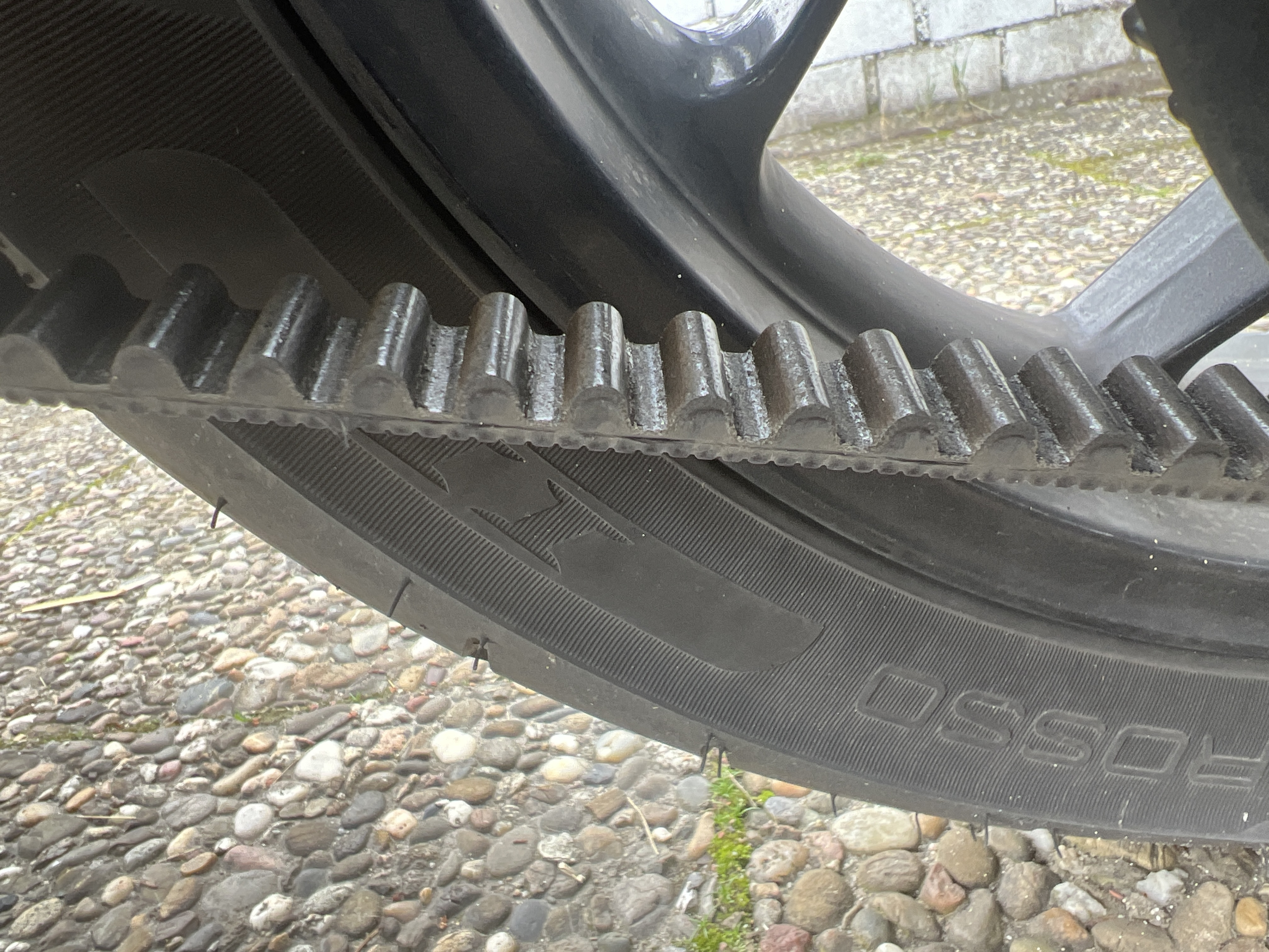 Kette verschleißt sicher wie blöde, braucht enorme Pflege, und muss trotzdem all heck lang getauscht werden, samt Ritzel und Rad. Steinschutz des Zahnriemens hat für mich daher absolute Prio!