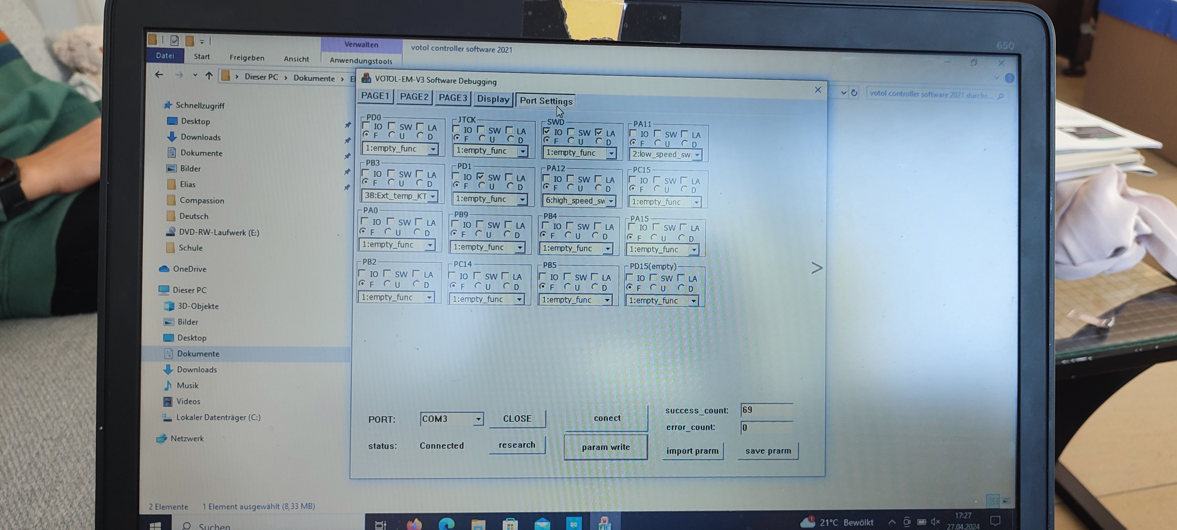 Ich hab mir diese Motor-Regler-Kombi, https://de.aliexpress.com/i/1005004638167349.html für mein Kartprojekt gekauft. Akkus habe ich sechs 3s Lipos in Reihe geschaltet und somit eine Spannung von 75V erhalten. Nun zu meinem Problem: Nachdem ich den Kontroller angeschaltet habe hat er egal mit welchem Pedal kein Gas angenommen (angeschlossen an dem pinken, grünen und schwarzen Kabel). Nun wollte ich den Kontroller auslesen jedoch verbindet der sich nur nach sehr langem probieren mit meinem Laptop, wenn nicht sagt er "communication abnormal no respons". Als ich es dann endlich geschschafft hatte hab ich gesehen das die Felder throttel voltage und start setting alle mit 0 ausgefüllt waren auch nachdem ich öfter geflasht hatte (mit origininalen Werten aus dem Internet) blieben diese bei Null. Woran kann das liegen?