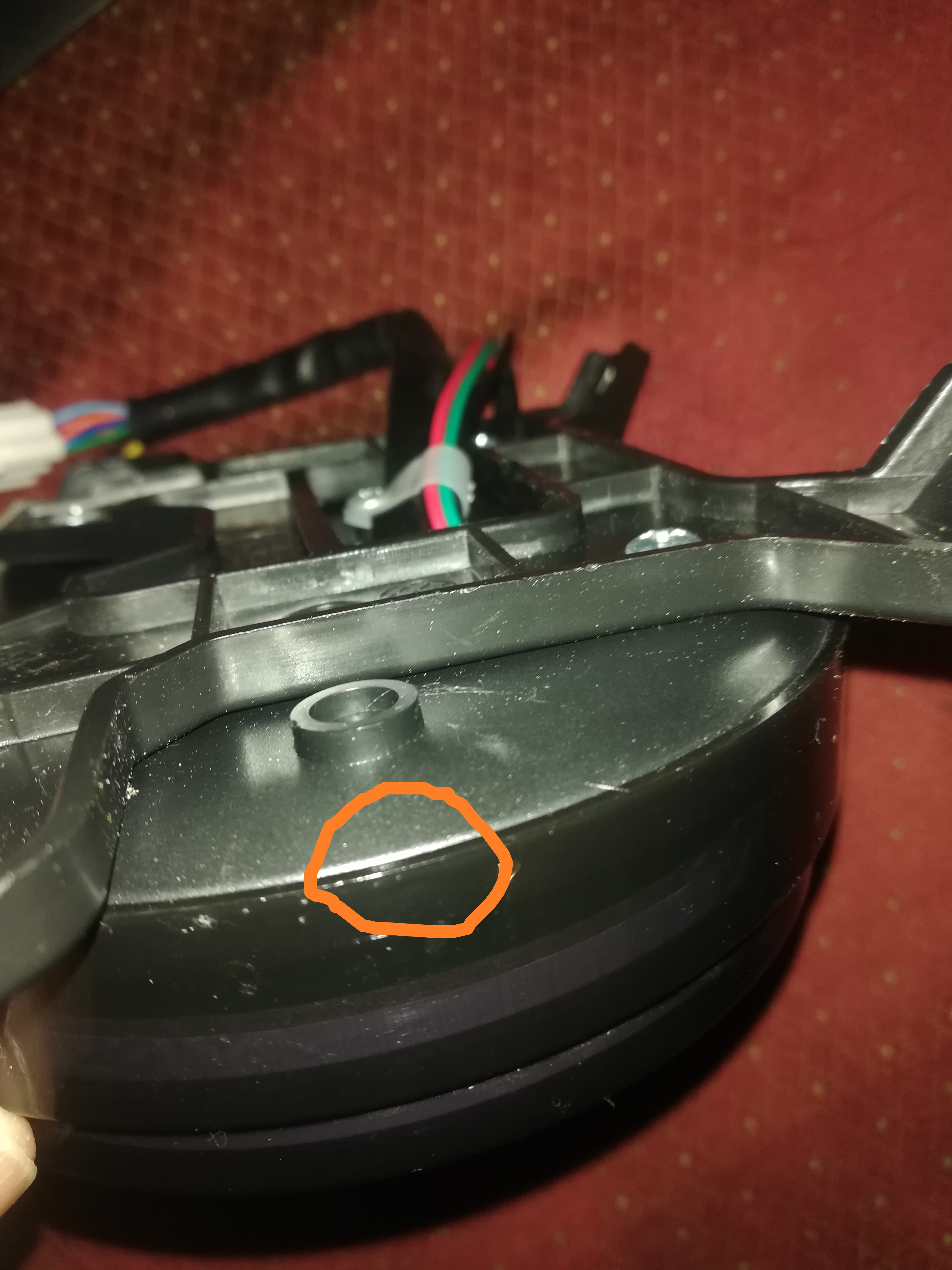 Meinst du den Rand der mit dem Kreis markiert ist? Ich vermute da kann man das Display öffnen. Ich hatte es aber nicht auf. Dann gibt es noch die Öffnung wo die Kabel eingeführt sind.