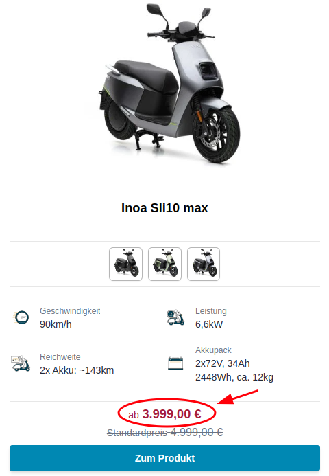 Der Sli11 Max, der vor einigen Monaten kurzzeitig zum selben Preis (4.000 €) angeboten wurde, ist frühestens ab September wieder lieferbar. Und dann vermutlich nicht mehr zu diesem Preis. Dieser war ja mit einem Getriebemotor ausgestattet. Im Gegensatz zum Sli10 Max, der über einen Radnabenmotor verfügt.