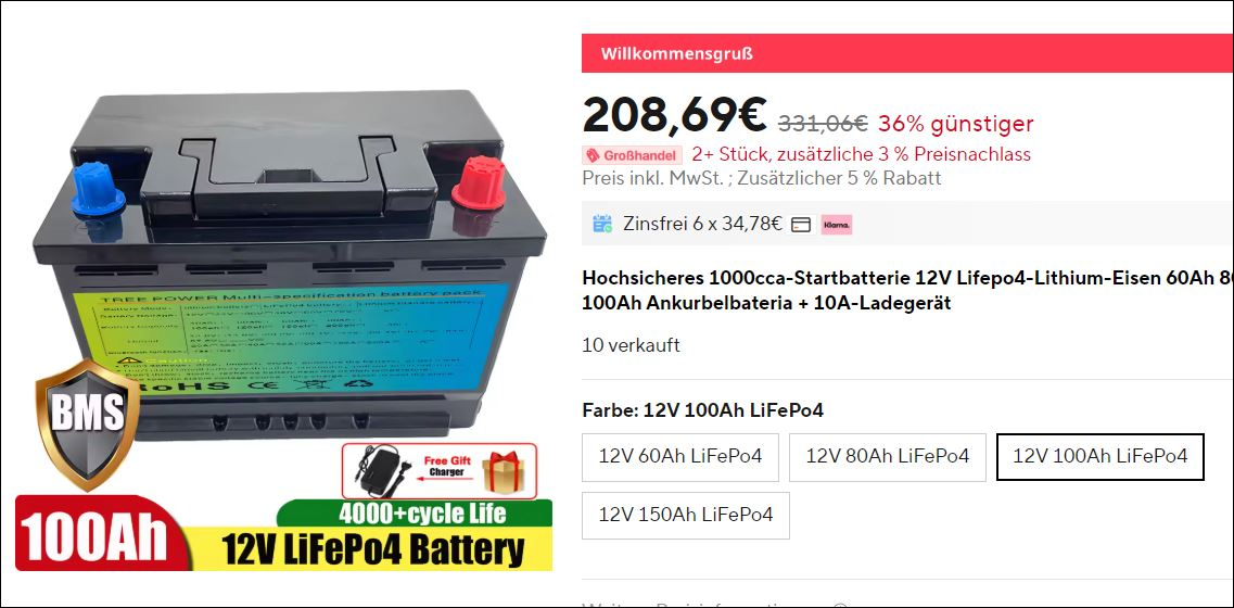 Habe den gleichen Akku zB von Rushmor für 144 EUR gekauft bringt sogar 106 Ah !