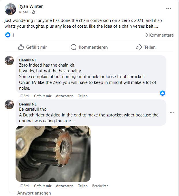Die Zero Riemen haben ja leider Carbonfasern für die Zuglast, und solche Fasern haben so gut wie keine Längenänderung bei verschiedenen Temperaturen. Während die Schwinge und das großen Riemenrad hinten aus Aluminium sind, was sehr große Längenänderung über der Temperatur aufweist!