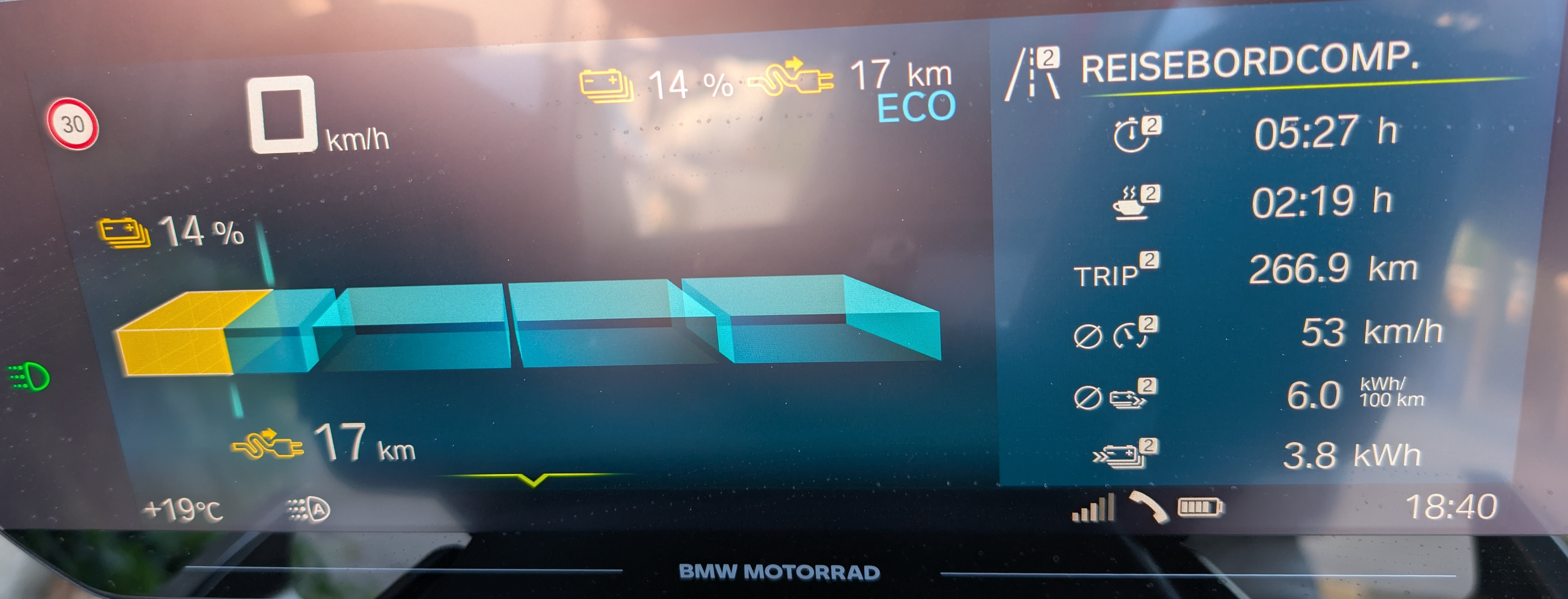 Ok, keine weiteren Tourfotos heute. Schnaitsee war komplett abgeriegelt, Zufahrt Windpark nur mit grossem Umweg ereichbar, also auf unspektakulären ober- und niederbayerischen Kleinstraßen heimgekurvt. 180km, 61km/h Schnitt, 6,3kWh/100 Verbr.schnitt.