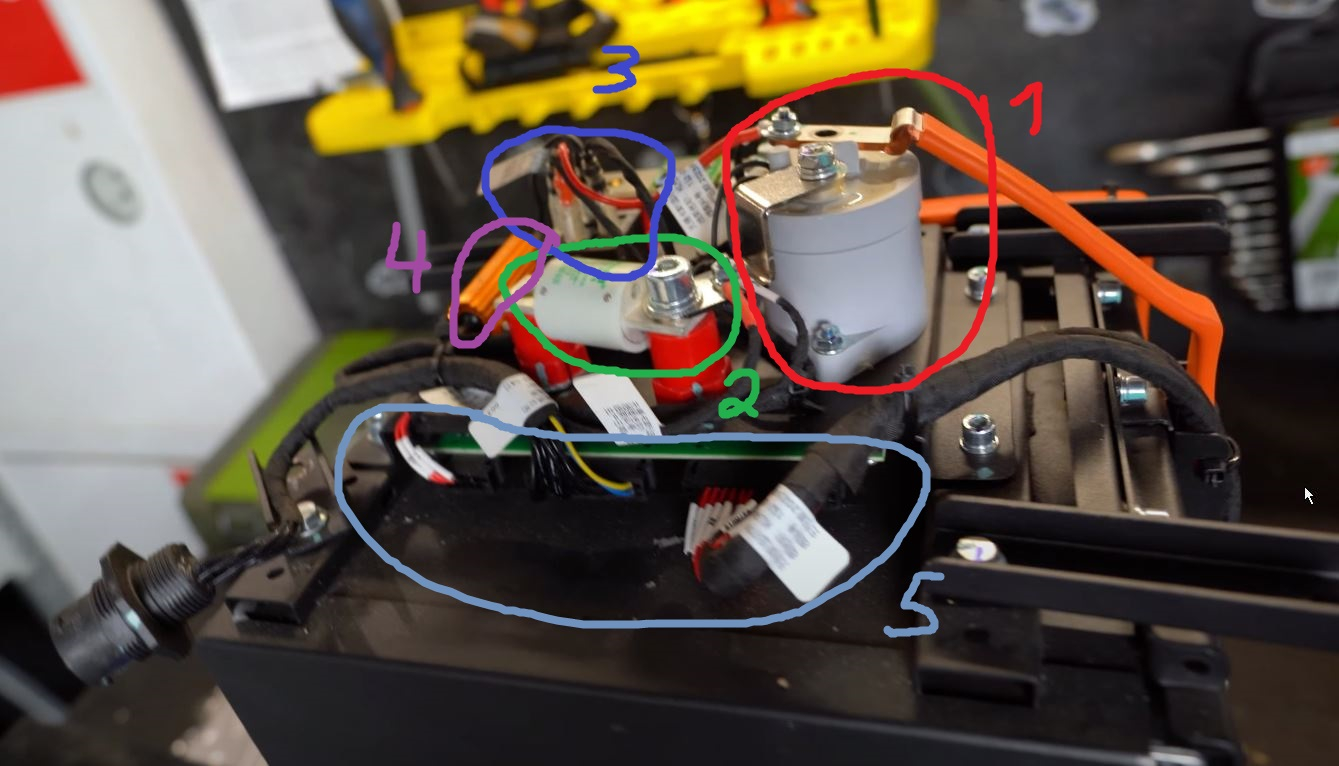 4: Vorladewiederstand (ich nenne dem mal so) ich nehme an der dient dazu um die Kontakte des Entladeschützes zu schonen.