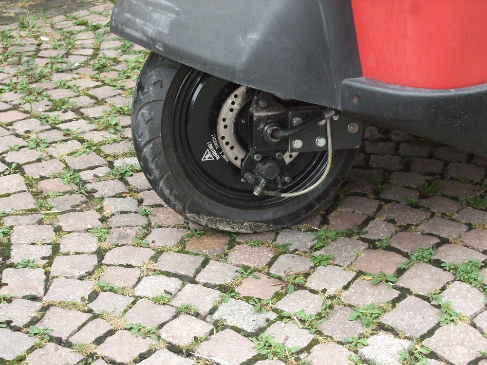 Als Dankeschön lüfte ich nun mein Geheimnis um das "Abarth". Ich hab eine Ape umgebaut. Das Vorderrad durch den E-Max Hinterrad-Motor ersetzt.
