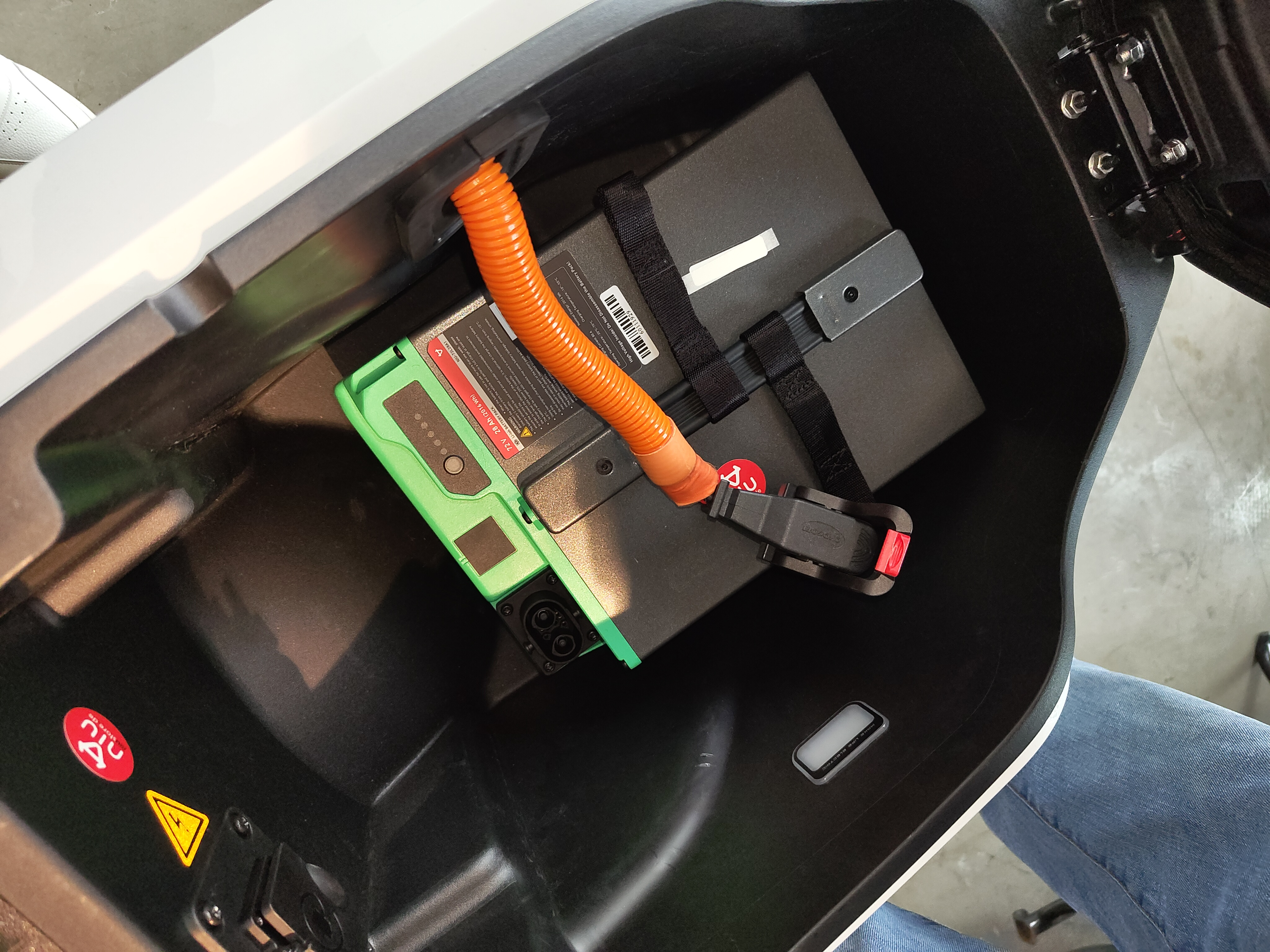 Die Problematik mit dem Ausschnitt für das Kabel haben wir uns angeschaut. Das Kabel wird leicht gequetscht. Ich werde das als Feedback der Community mal an Niu geben und hoffen, dass die eine einfache Lösung finden. Man könnte am Sitz unten etwas wegnehmen, aber eigentlich sollte das auch aus dem Werk mal gescheit umgesetzt werden. Schließlich werden das viel mehr Leute nutzen wollen, da kaum jemand 3 Akkus z.T. einzeln laden und diese auch noch zur Steckdose tragen möchte.