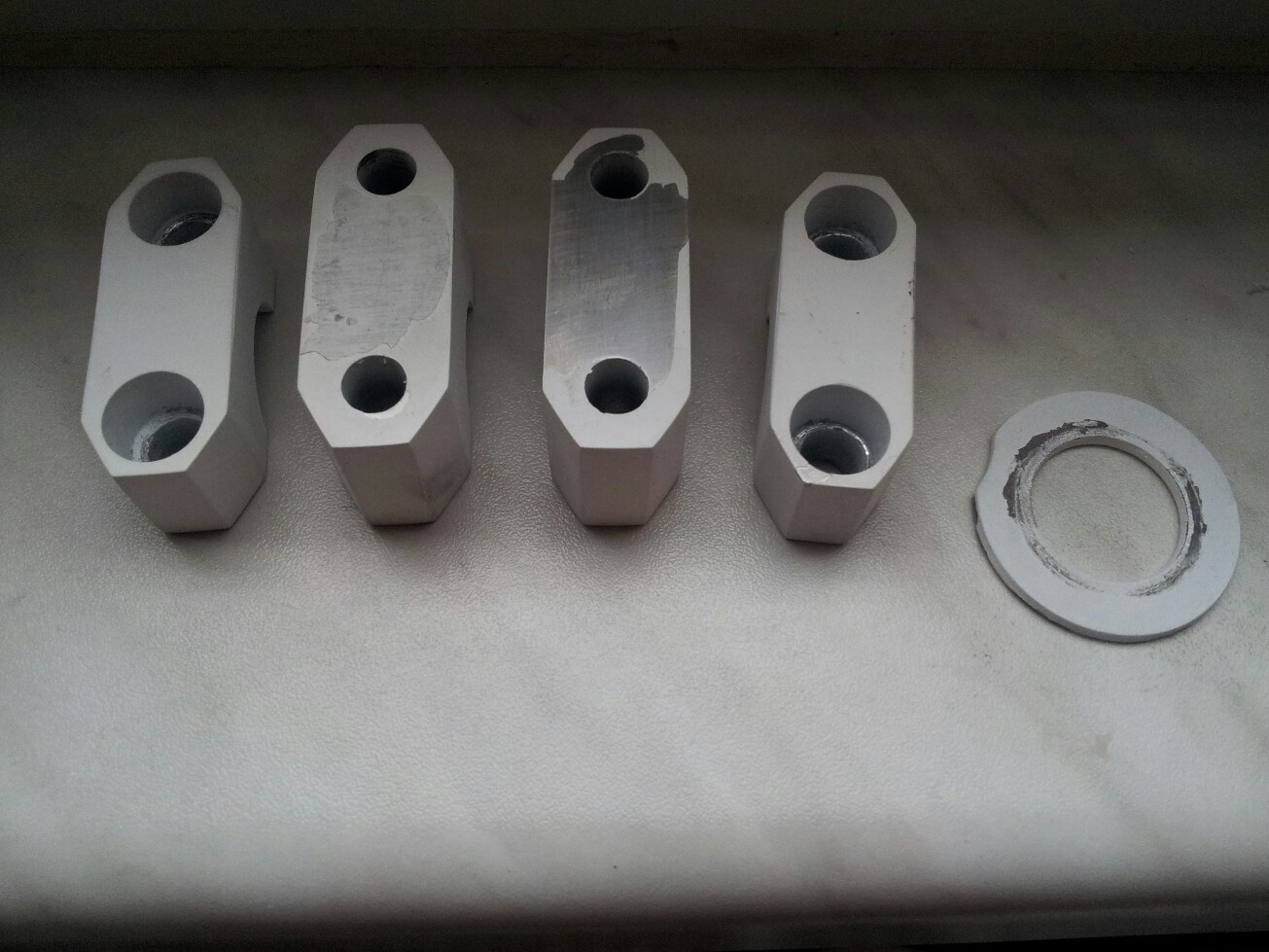So sehen die Klemmböcke nach einmal montieren aus. Die Grundierung blättert ab.