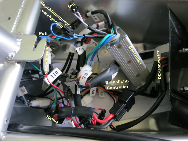 Hmm okay habe mal alles geöffnet und es sieht genauso aus wie auf deinem bild. Was ist denn der dc wandler? Der ganze Controller? Ist der nicht abgesichert? Die 5A sicherung ist ok die 40 A auch. Motor läuft auch, aber ich bezweifle das der Akku wieder neu geladen wird. Das Ladegerät blinkt permanent rot.