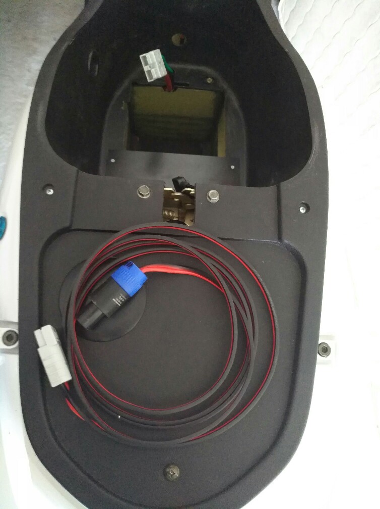 Er hat jetzt noch einen wasserdichten Akkuschacht und eine Ladebuchse (Speakon) bekommen, damit man nicht immer das Helmfach öffnen und den Akku zum laden abstecken muss.