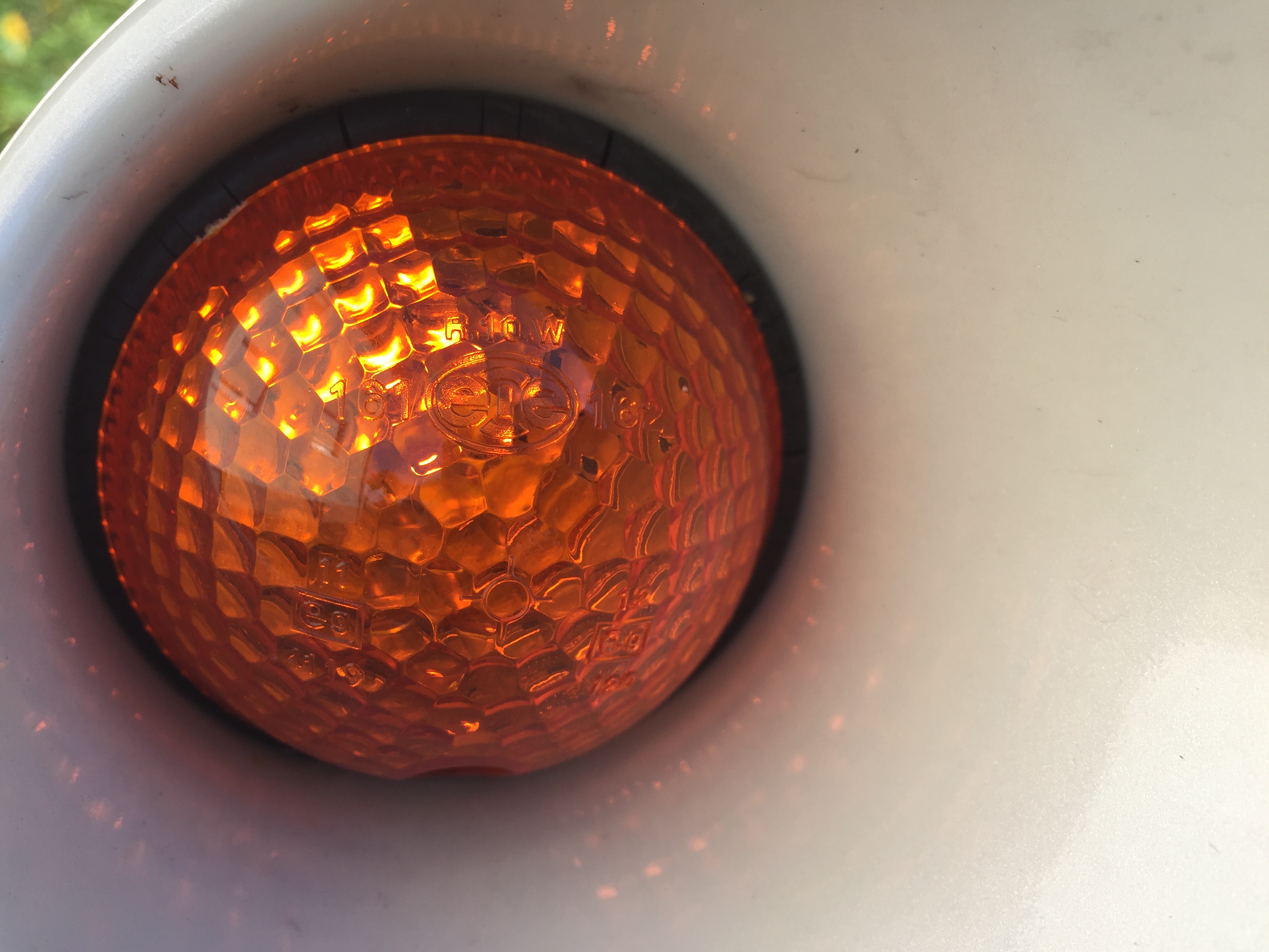 Zuhause ließ ich die Kiste erst mal an und untersuchte die gesamte Beleuchtung. Dabei fiel auf, dass die untere Hälfte der runden Rückleuchte immer dunkel blieb. Die obere Hälfte war beleuchtet, aber beim Bremsen wurde die obere Rückleuchte nur marginal heller.