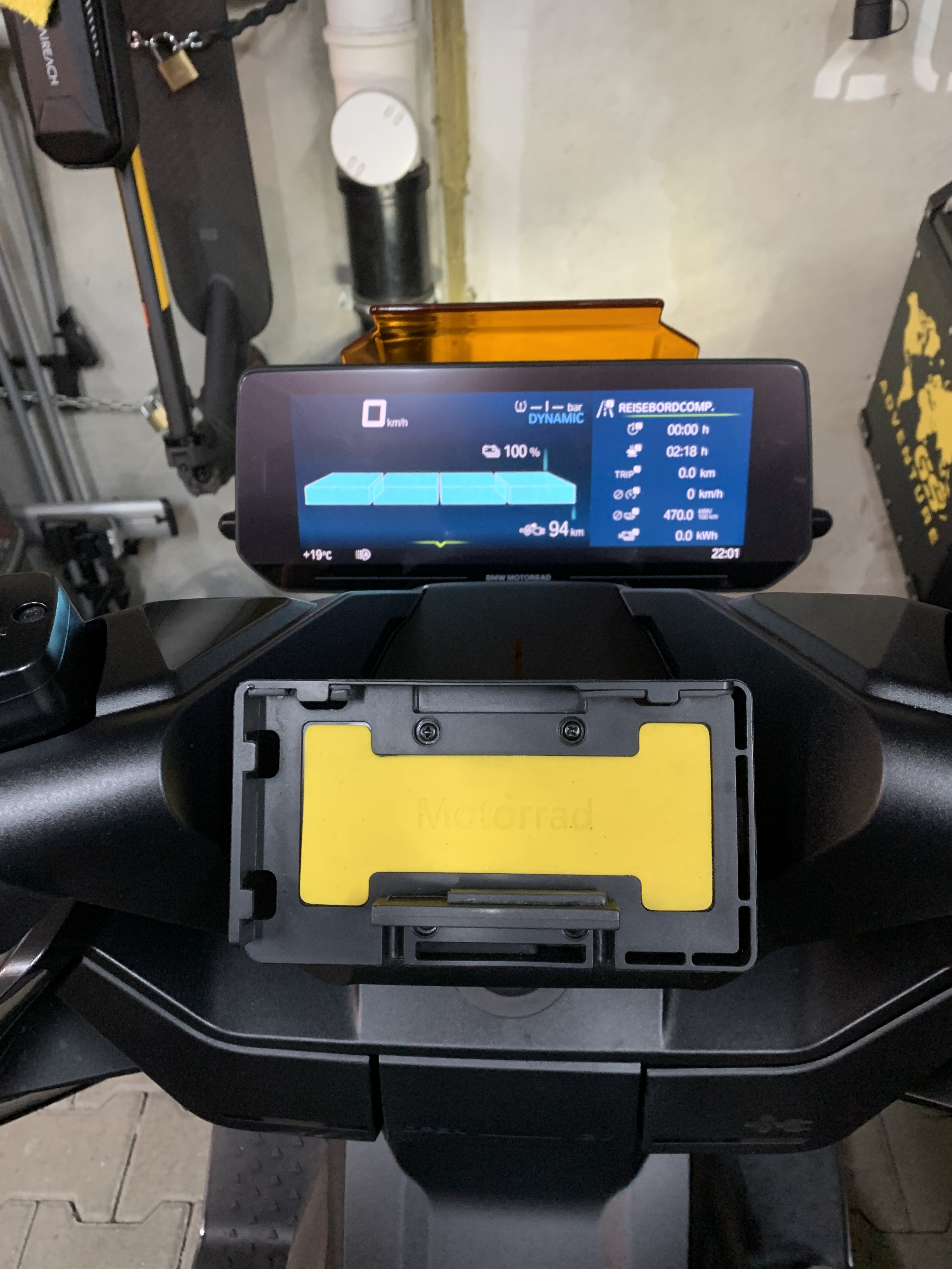 Das BMW Navi hab ich von meiner GS, braucht auf dem CE04 natürlich niemand....mir ging es nur um den Halter fürs Handy, der genau in diese Naviaufnahme passt und das Handy induktiv laden kann.