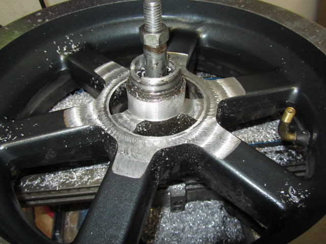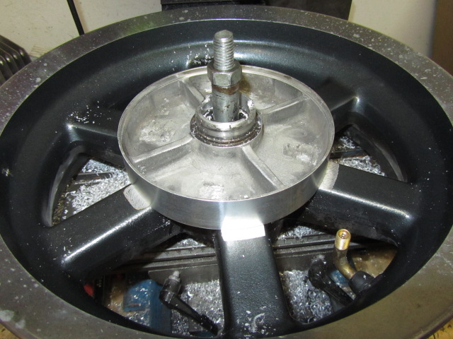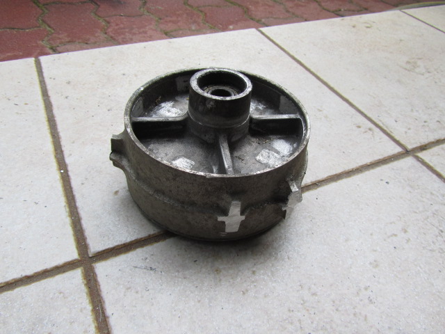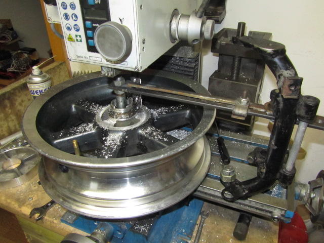 Ich habe mich jetzt entschlossen hinten eine 3,5" breite felge einzubauen das der Reifen nicht zu sehr gedrückt wird und am Rand mehr Auflagefläche ist. Es ist wieder ein ehemaliges Vorderrad wegen der Lagerung. Der Mitnehmer stammt aus einer RG 80 das ich mein "altes" Kettenrad so weiter verwenden kann.Aber seht selbst
