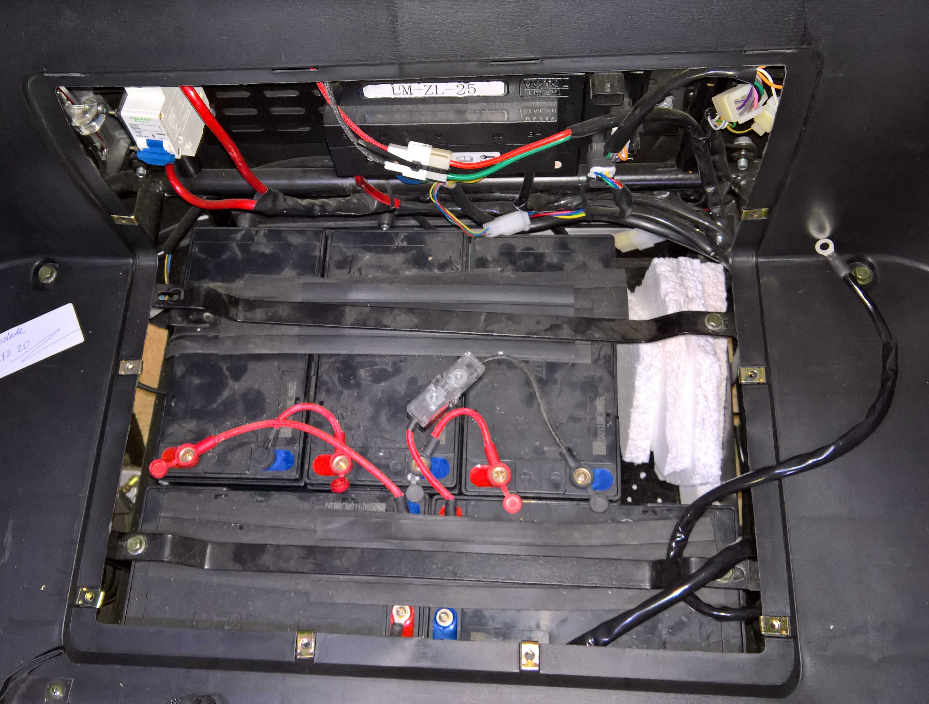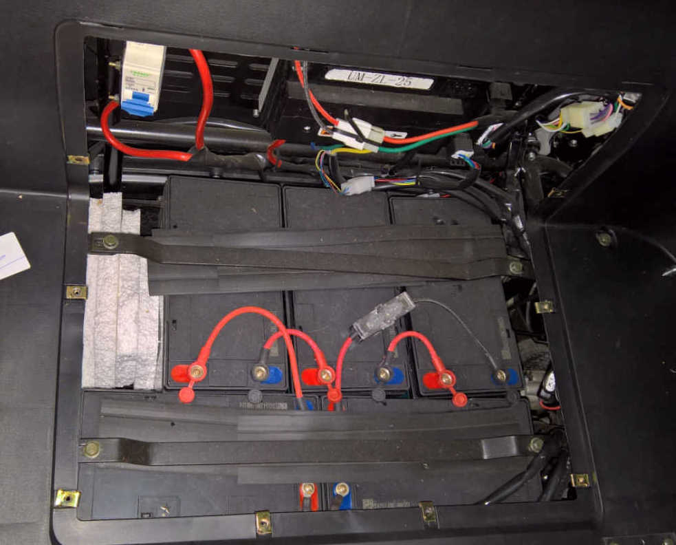 Nun zum Akkufach. Bei mir sieht es ab Werk so aus (großer Kabinenroller):