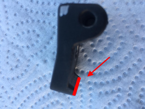 Das sieht leider SEHR deutlich "abgenagt" aus. Dieses Teil muss sicher ganz ersetzt werden, weil der Riegel nicht mehr ausreichend Halt daran findet.