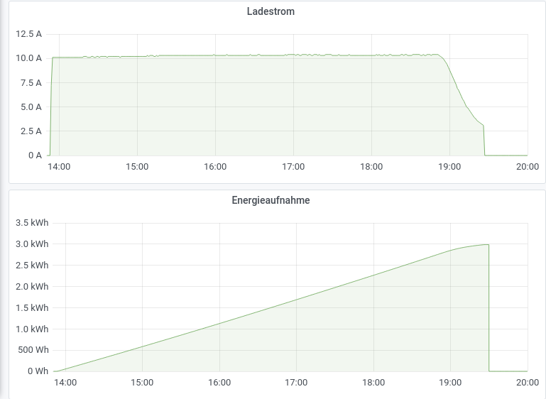 Bei mir schaltet ein Zigbee Zwischenstecker, der schalten und messen kann, den Strom 10 min nachdem die Leistung auf 4W gefallen ist, ab. Konkret ist das ein Schwaiger ZHS15. Gesteuert wird der von einem Raspberry PI mit Node Red und zigbee2mqtt. Weil Node Red die Leistung, die der Stecker alle paar Sekunden meldet, in eine influxdb schreibt, kann ich mit Grafana solche Kurven erzeugen.