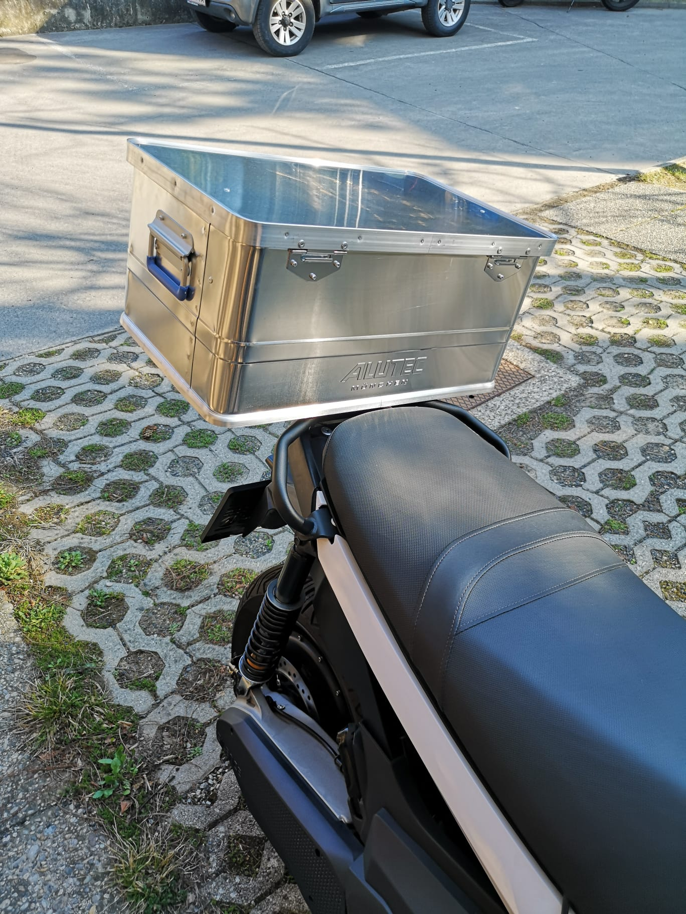 Ich verwende jetzt allerdings den Grundträger alleine, um darauf Werkzeugkisten und Euroboxen festzuzurren und habe mir (noch) kein Topcase dazu gekauft, weil mir die sowohl optisch nicht wirklich gefallen, als auch für meine Zwecke nicht sehr geeignet sind (zu klein, zu rund, wenig robust), da ich beruflich Werkzeug und Geräte, privat jede Menge Gemüse aus dem Garten transportiere.