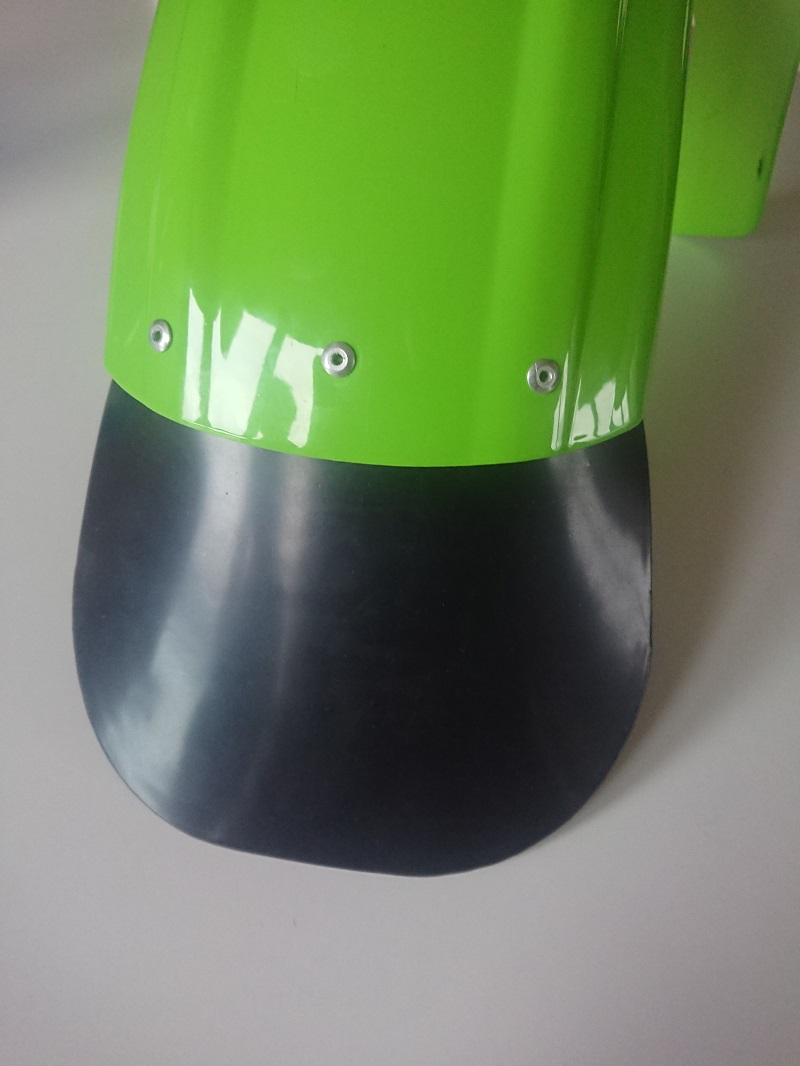 Ich habe mir diesen hier geholt, als Schutzblechverlängerung für das Hinterrad (passt nicht). Jetzt habe ich ihn mal vorne drangeklemmt: