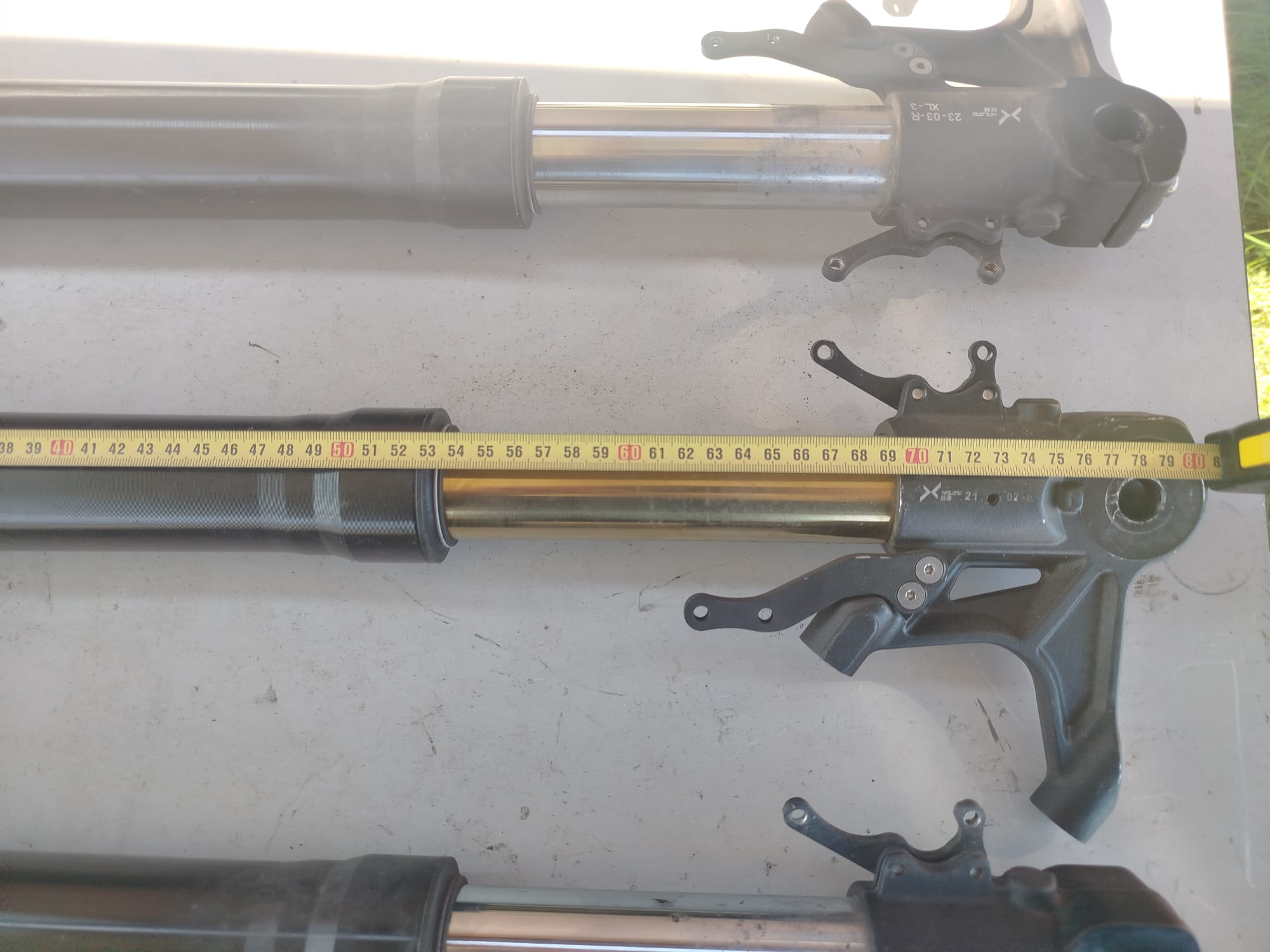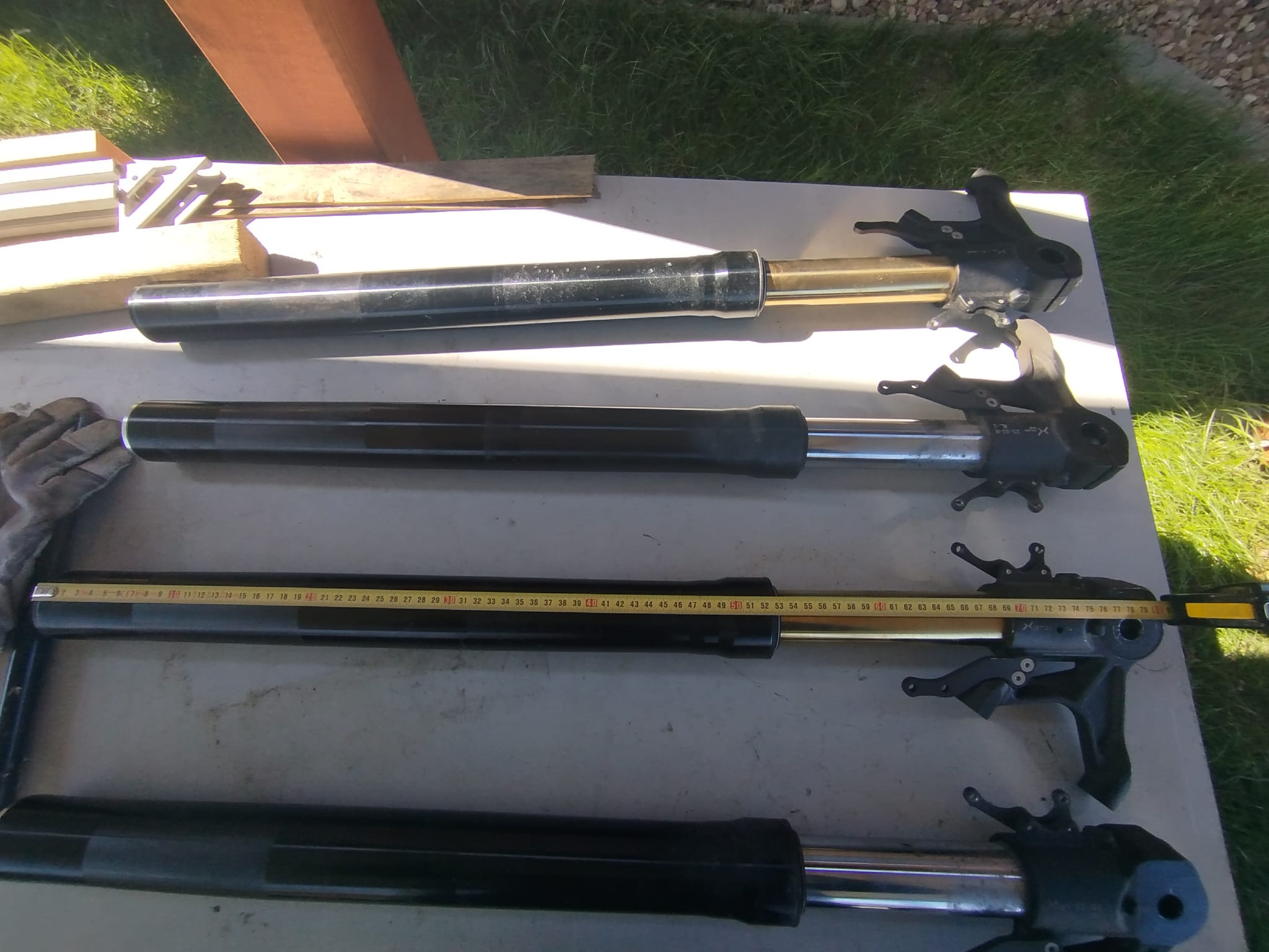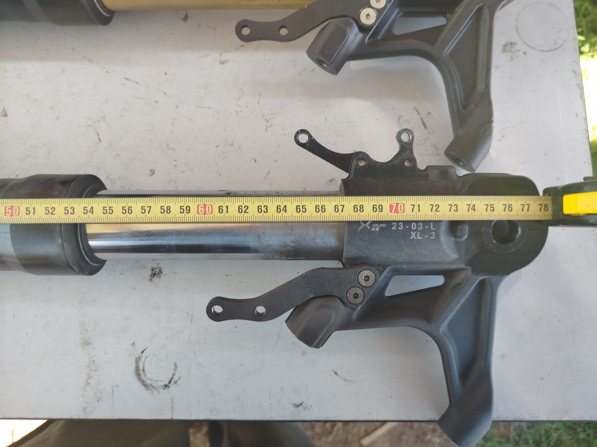 Hier mal ein Vergleich der Federbeine der Alrendo L und der Tinbot RS1. Alles gleich bis auf die Länge des Holmes. Bei der Alrendo ist dieser 2cm länger.