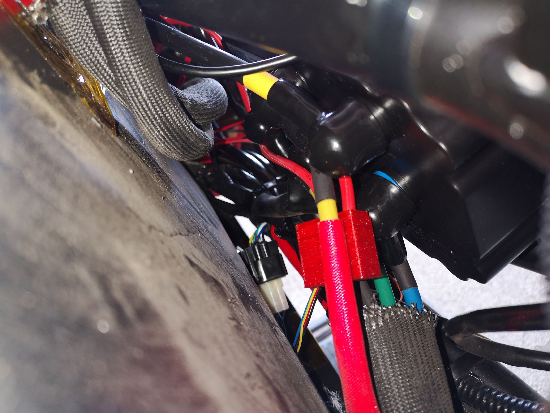 Die verwendeten WACO-Klemmen und der Shunt wurden dann noch mit selbstgedruckten Schutzkappen (aus rotem TPU) versehen.