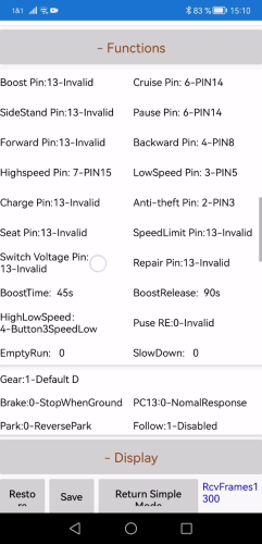 Bei dem Standart-Fahrdriver bekomme ich in der App bei "funktions" nur die fünf Werte (siehe Bild oben) angezeigt. Wenn ich auf "funktions" klicke schaltet es nur kurz auf alle Werte um und dann gleich wieder auf die Sparversion.